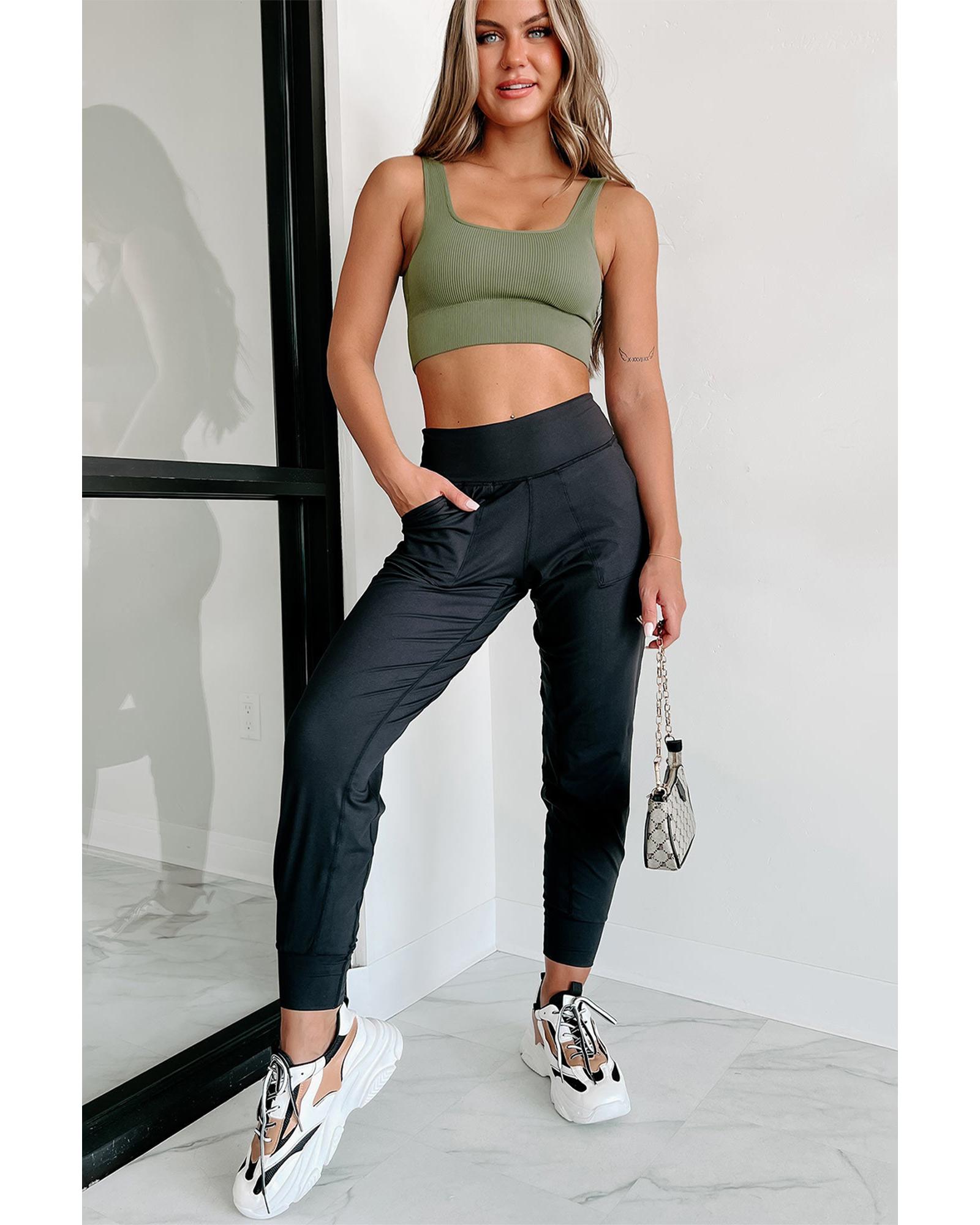Black Exposed Seam High Waist Pocketed Joggers – XL