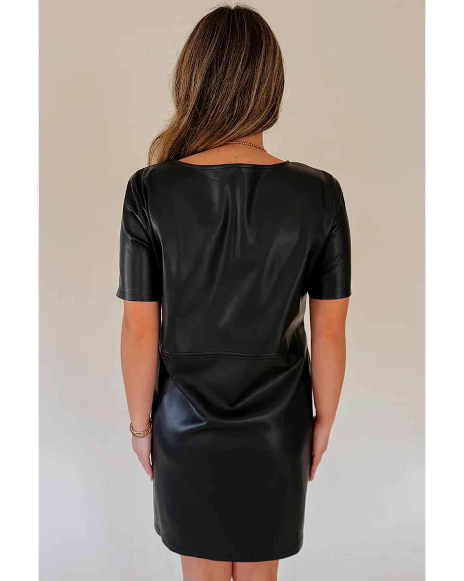 Black French Terry Zipped Collar Sleeveless Drawstring Waist Mini Dress - XL