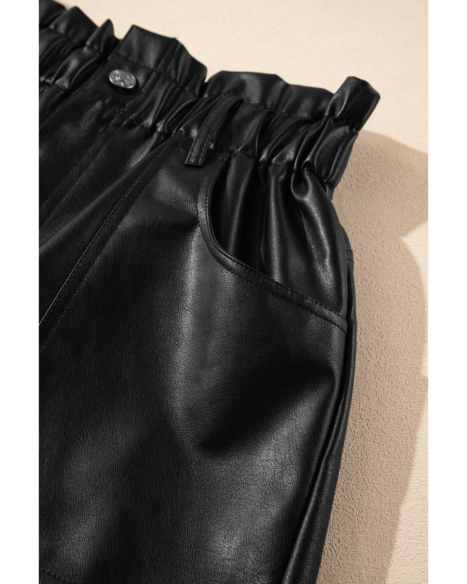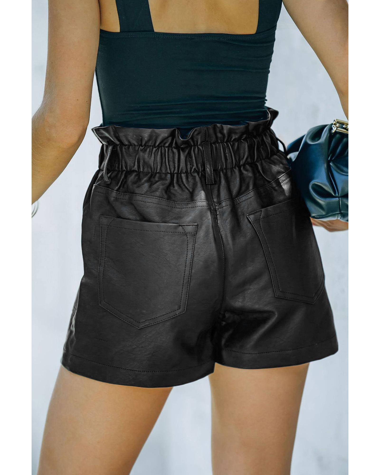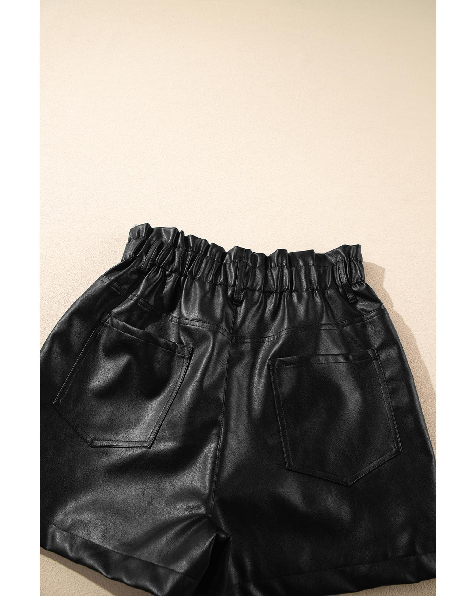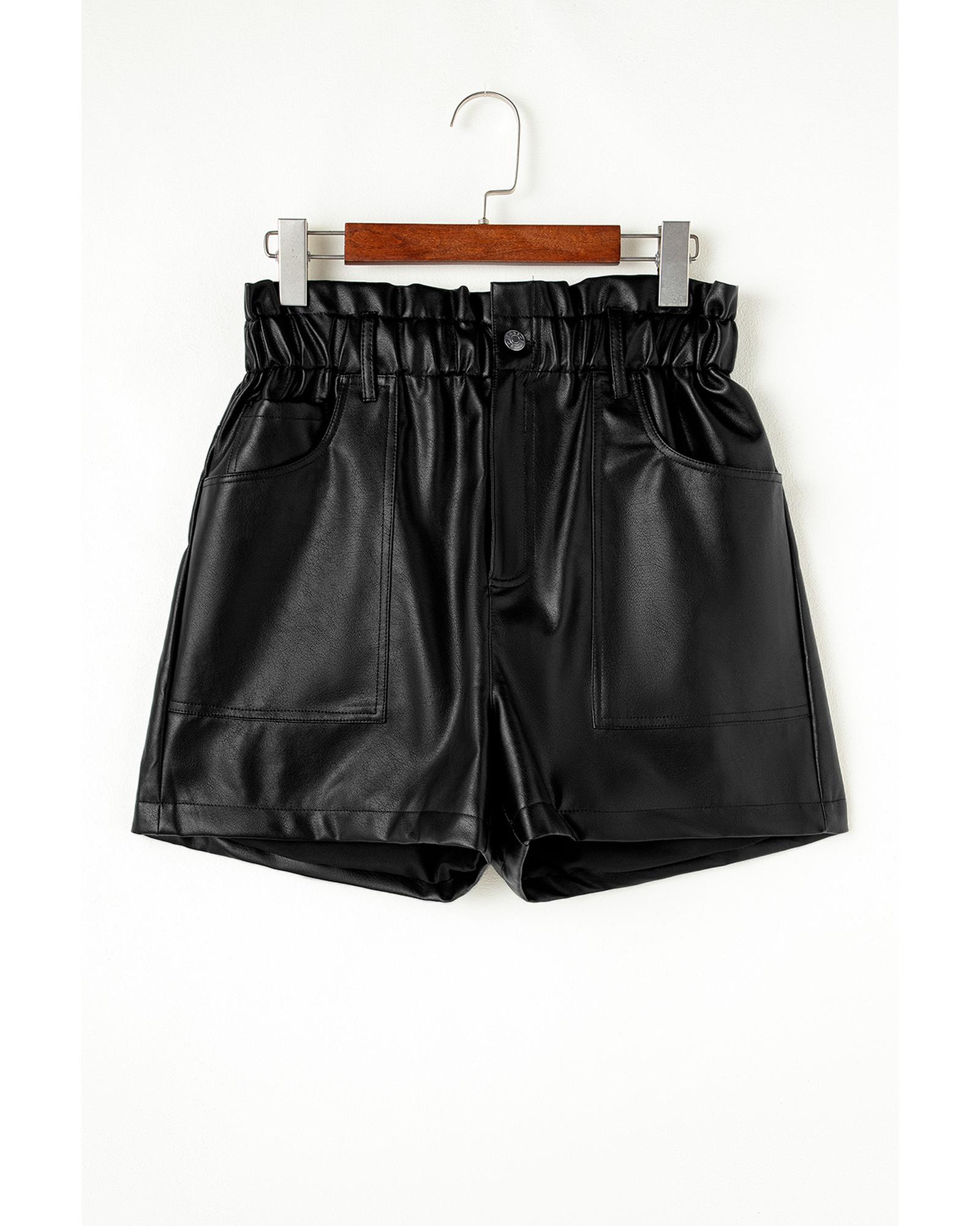 Black Faux Leather Paper Bag Waist High Rise Shorts – L