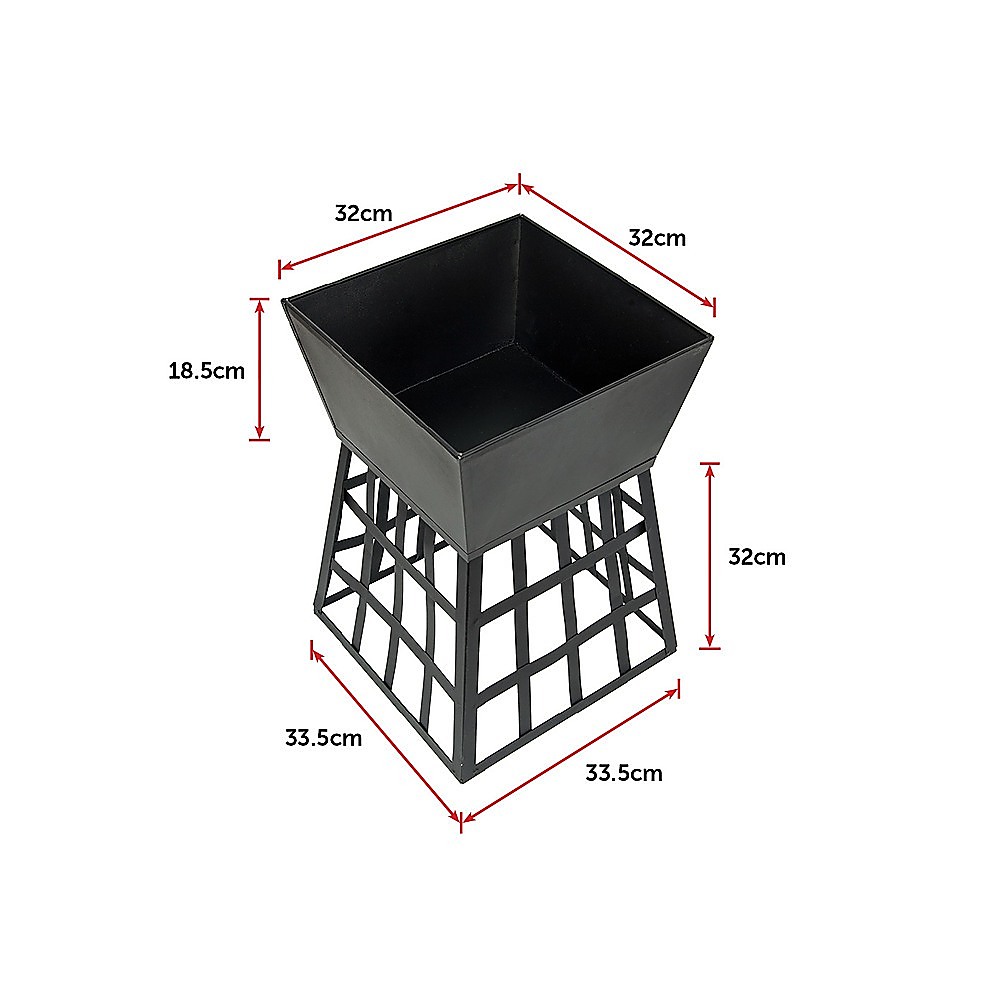 Black Fire Pit Square Log Patio Garden Heater Outdoor Table Top BBQ Camping