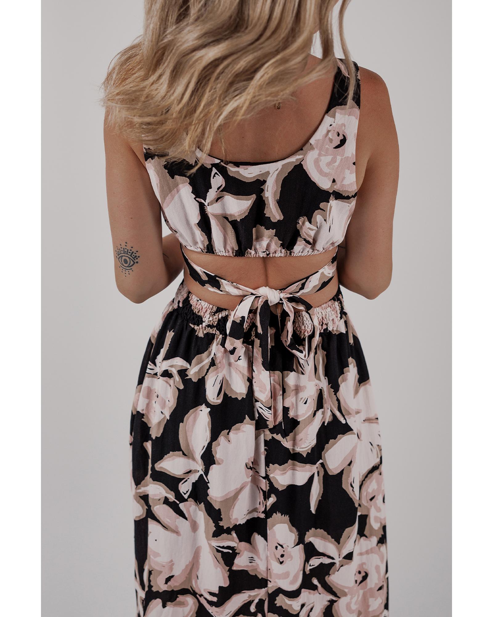 Black Floral Cutout Square Neck Knot Back Sleeveless Maxi Dress – L