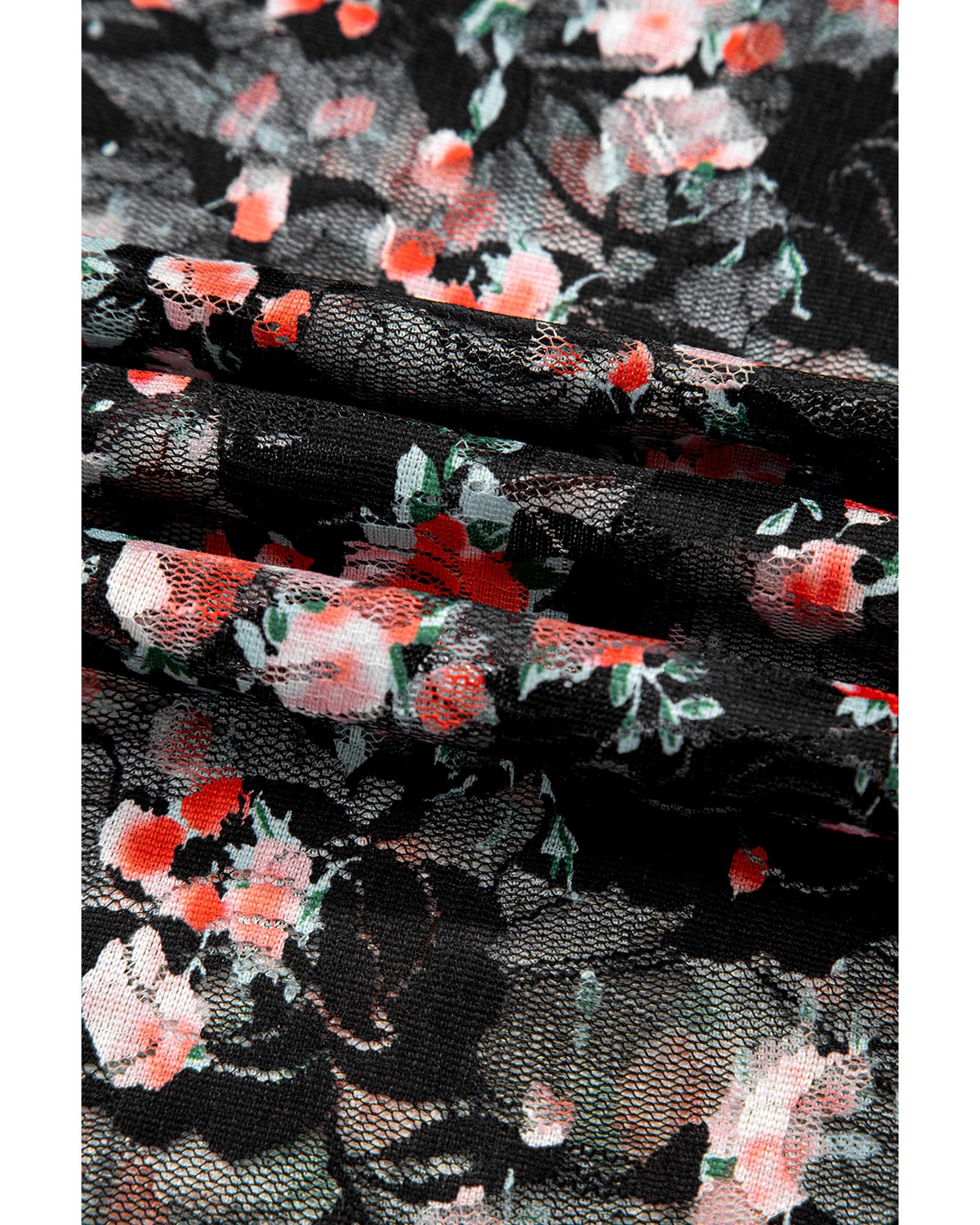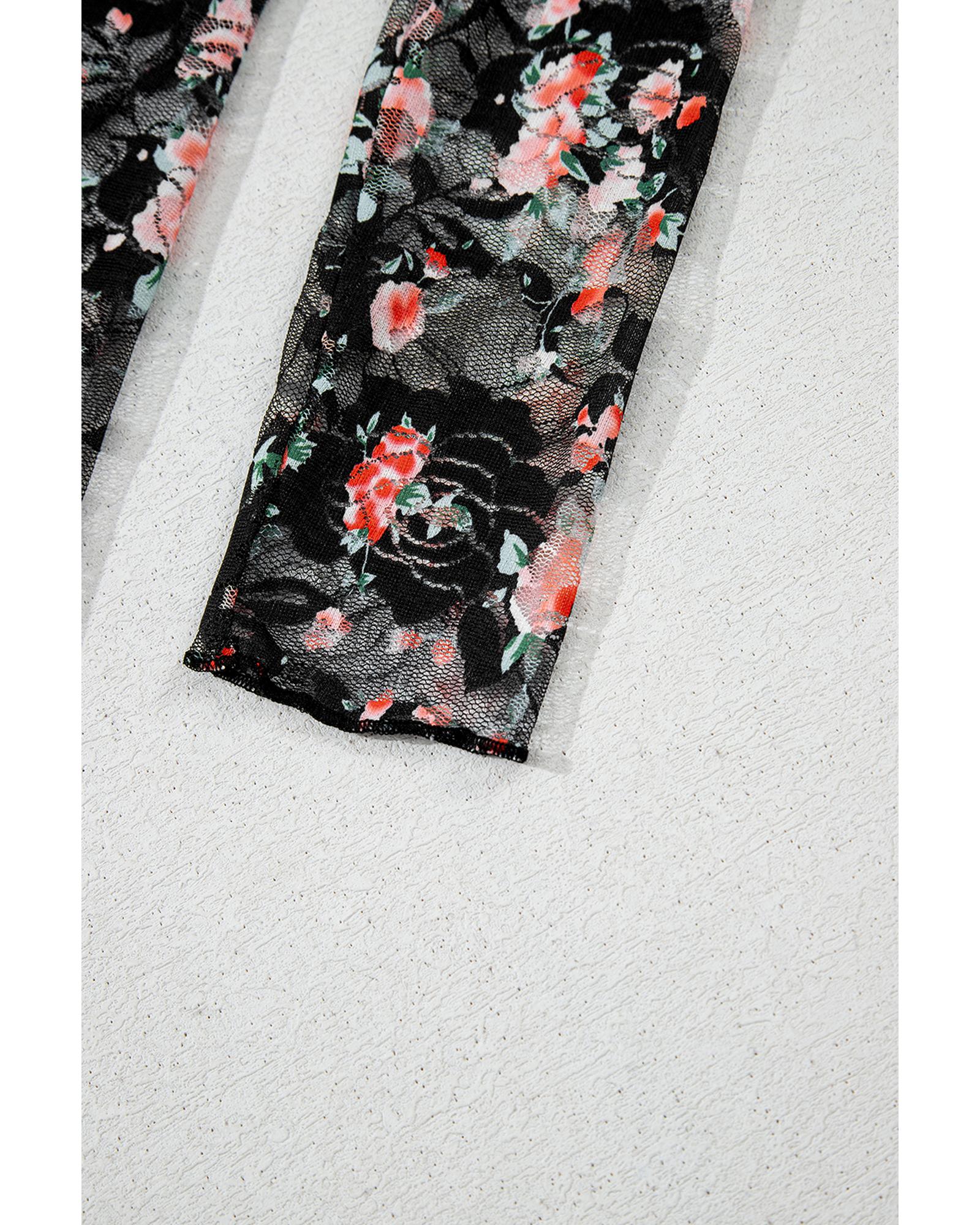 - Black Floral Mesh Sheer Long Sleeve Top with floral pattern