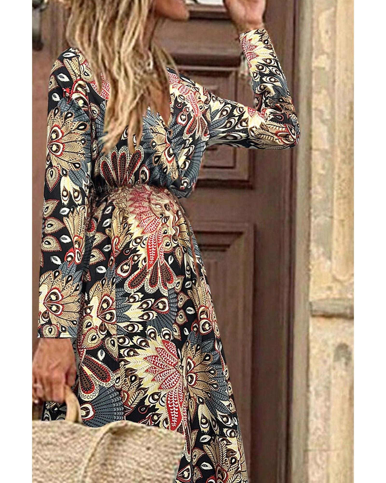 Black Floral Print V Neck Wrap High Waist Maxi Dress – M