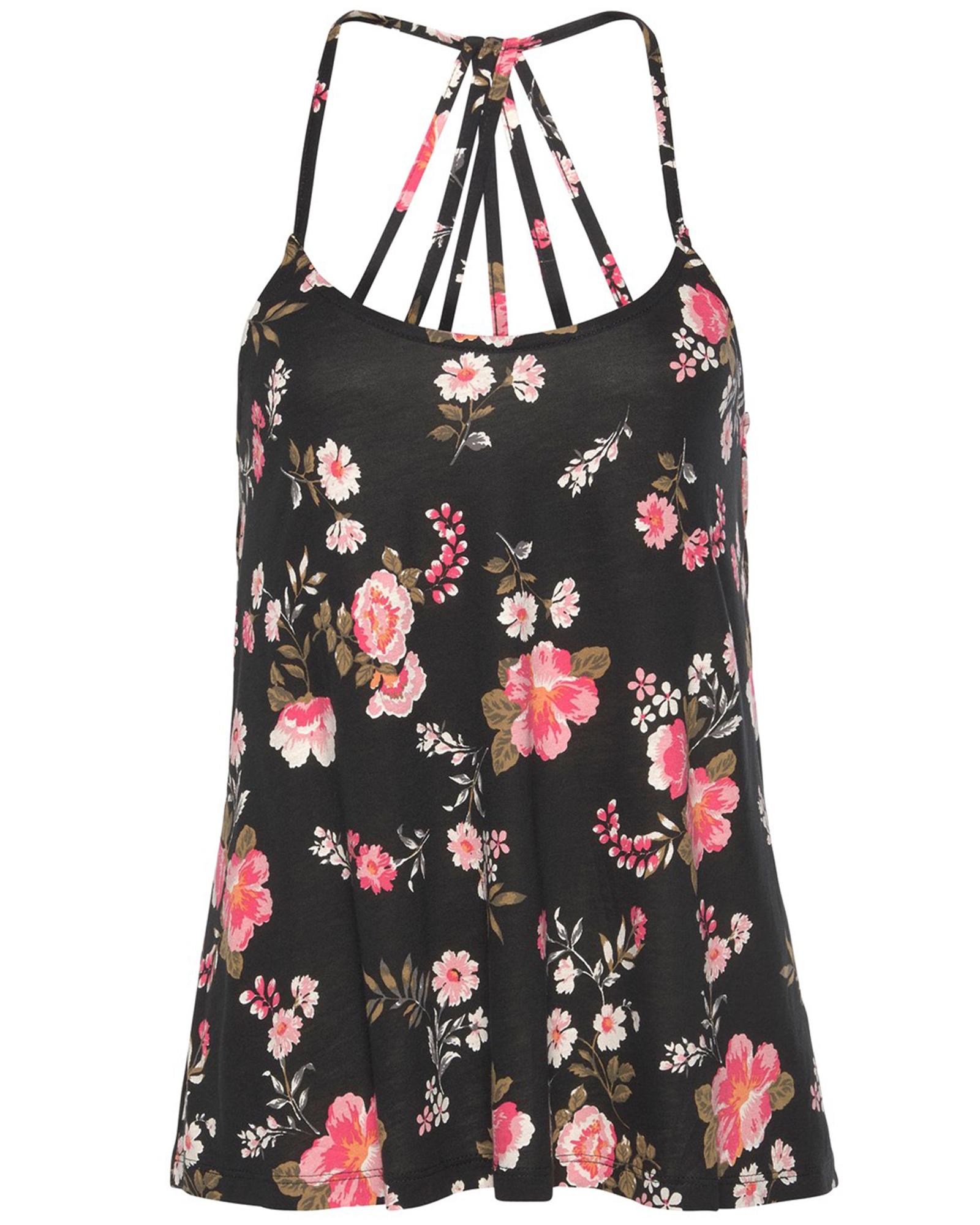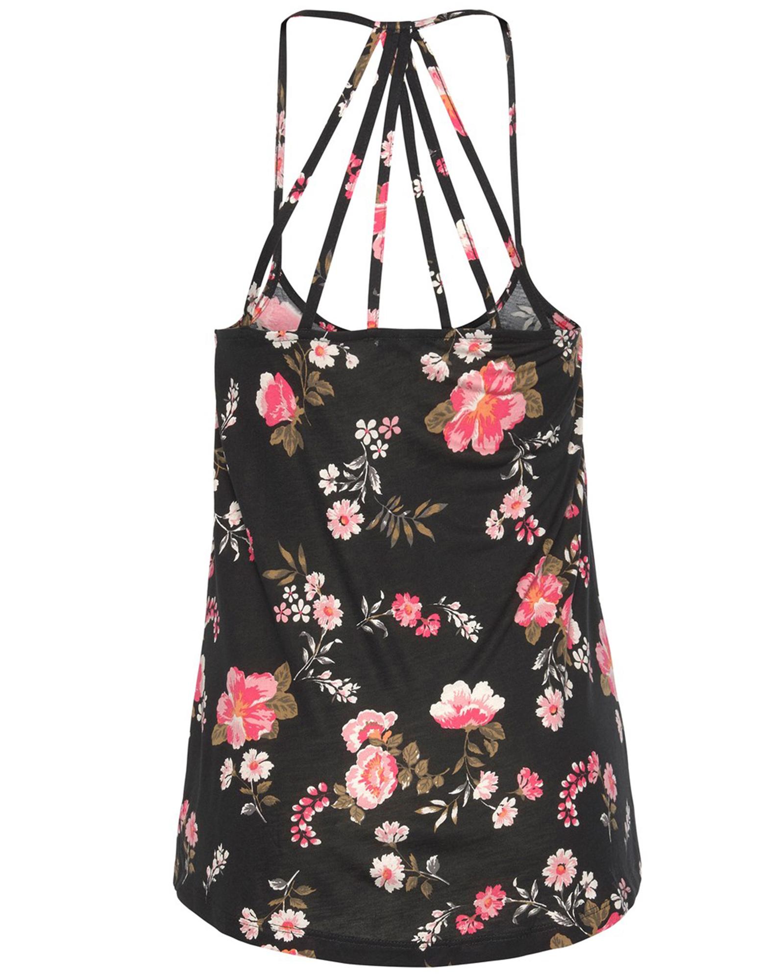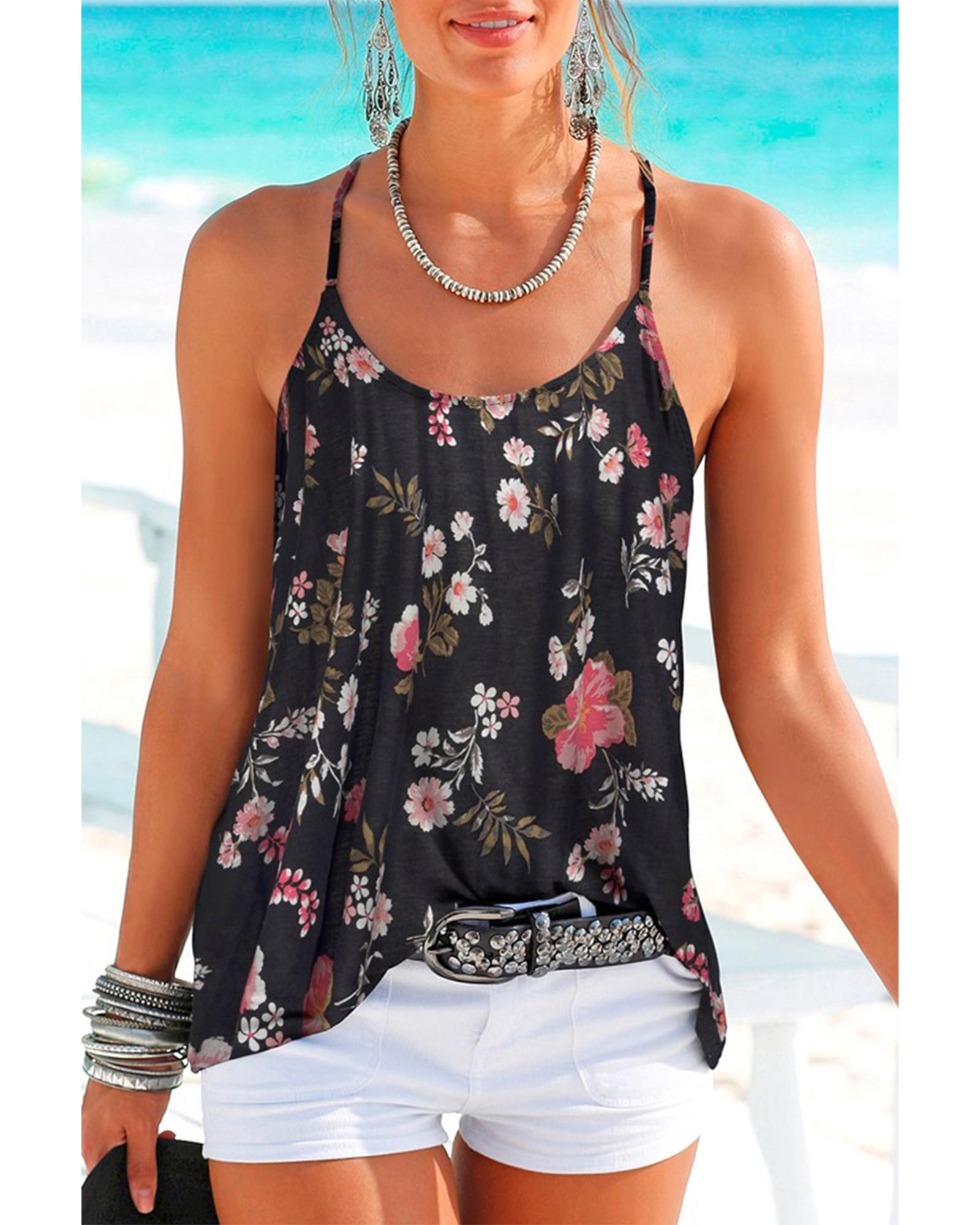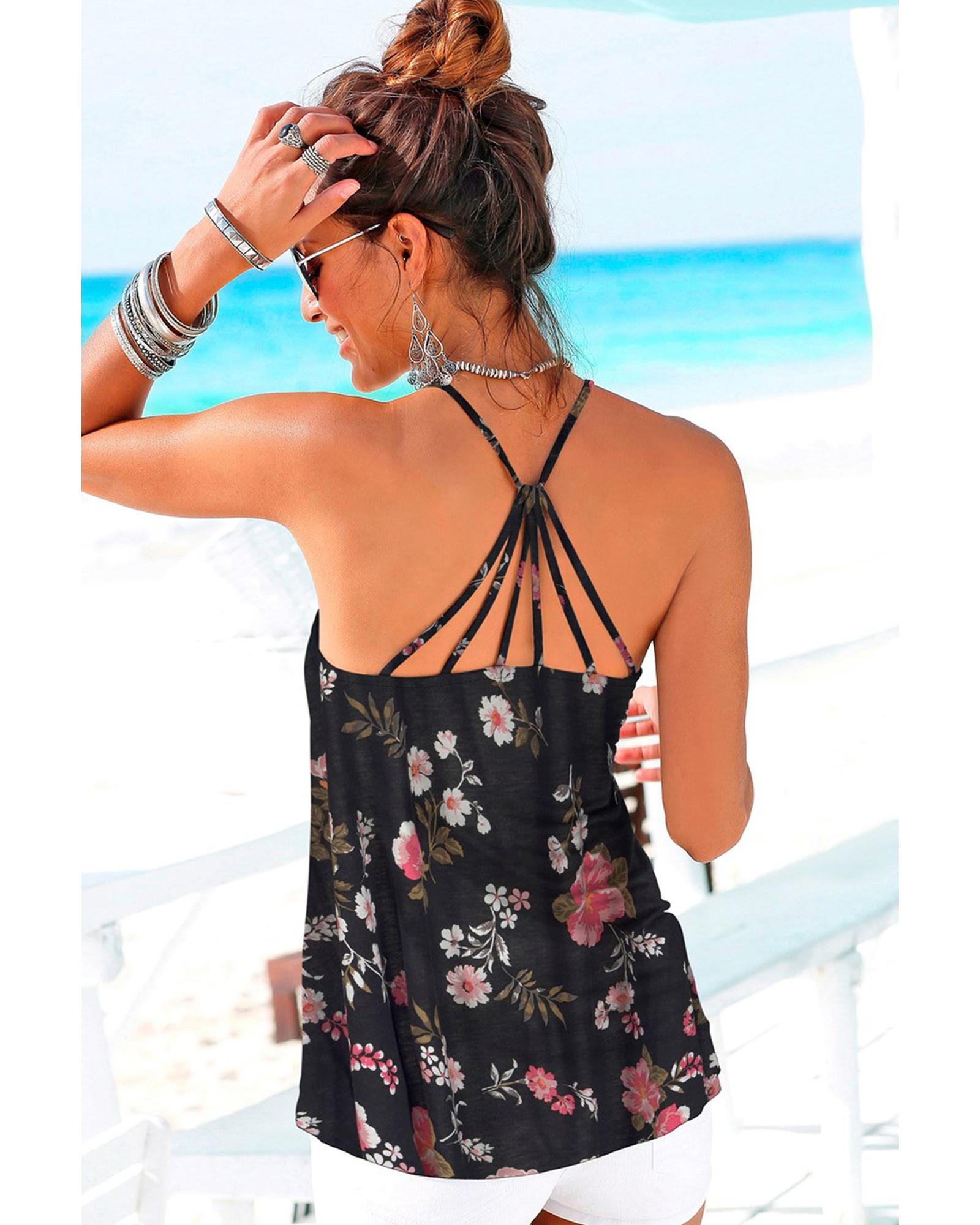 Black Floral Spaghetti Straps Strappy Back Tank Top – S