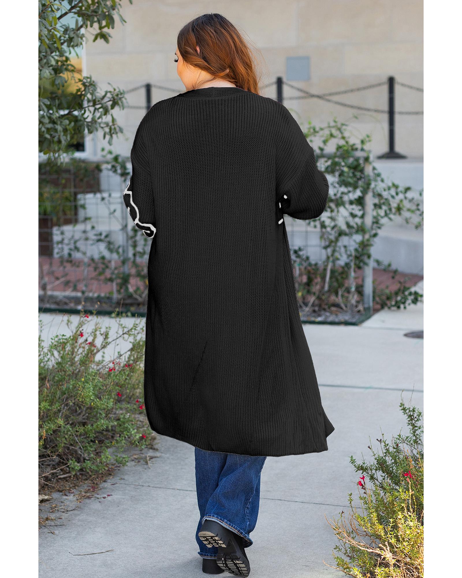 Black Flower Embroidered Drop Shoulder Open Front Duster Cardigan – XL