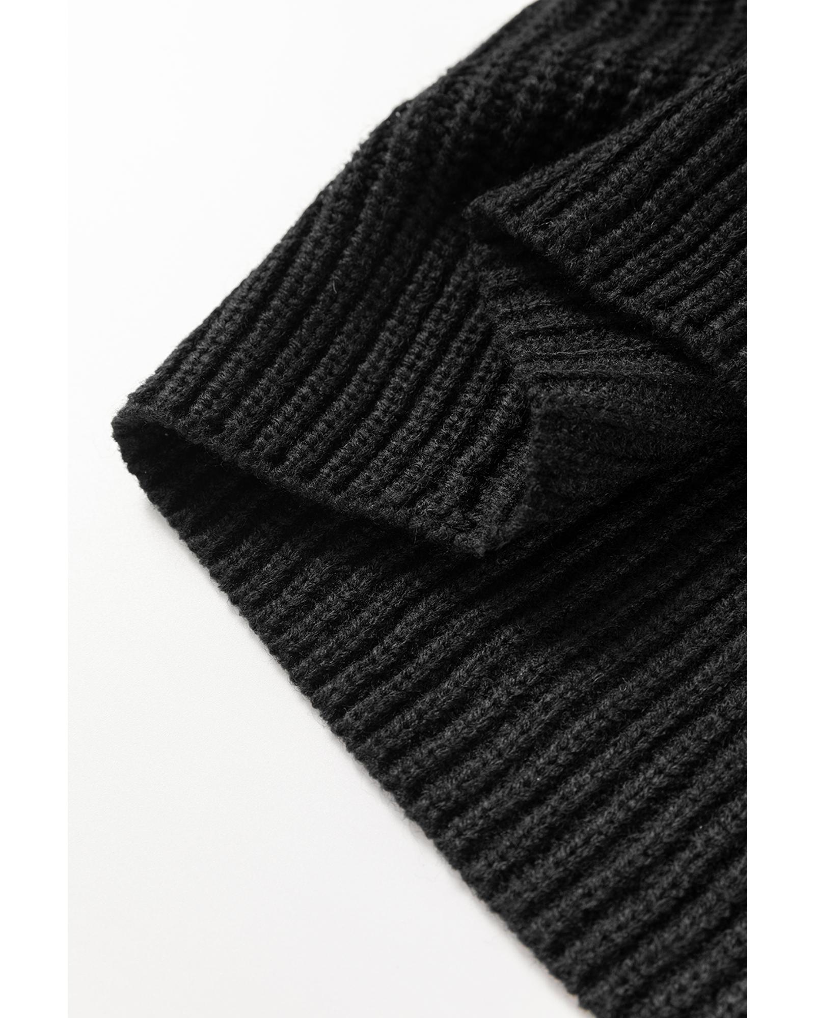 Black Colorblock Striped V Neck Knitted Loose Sweater - M