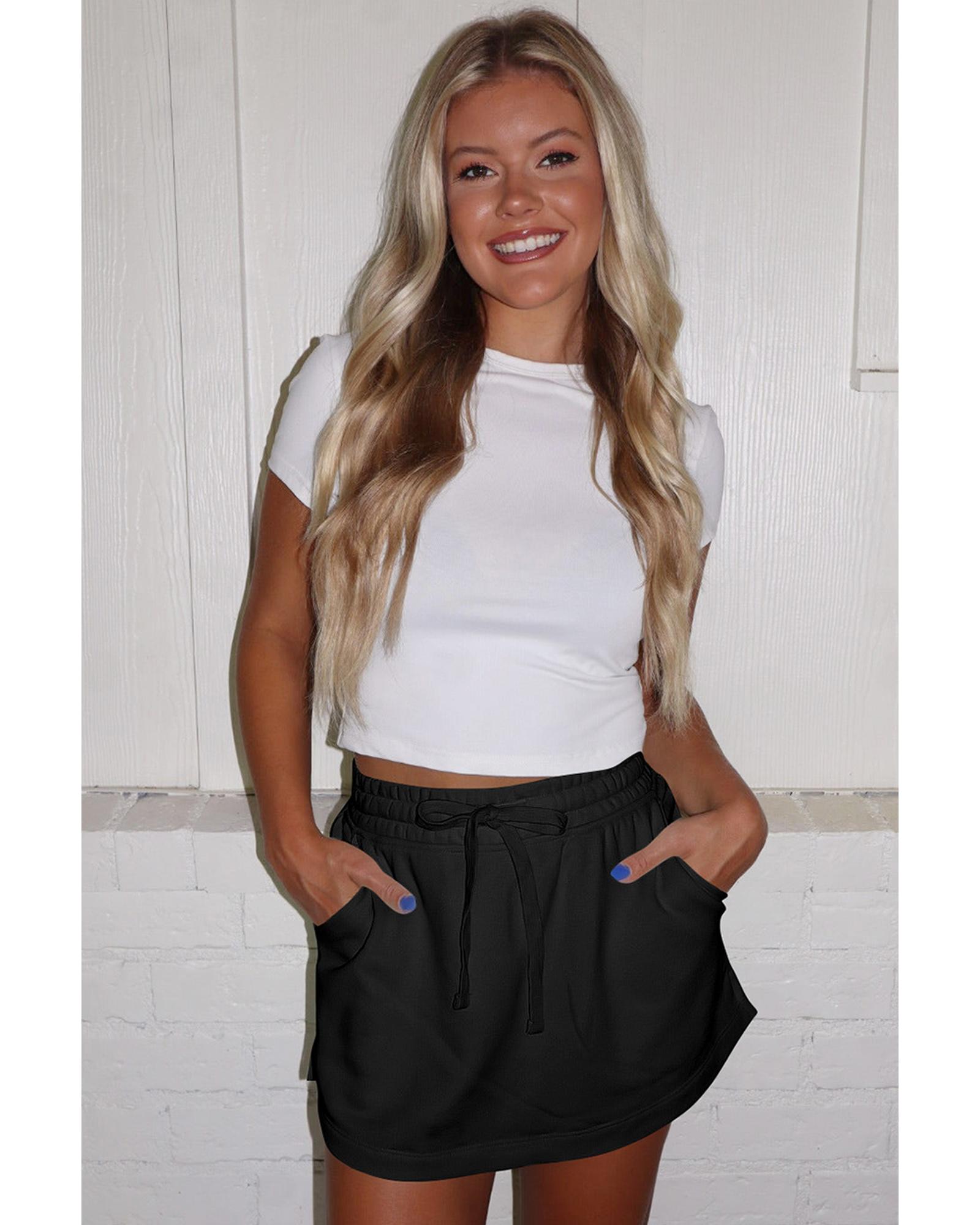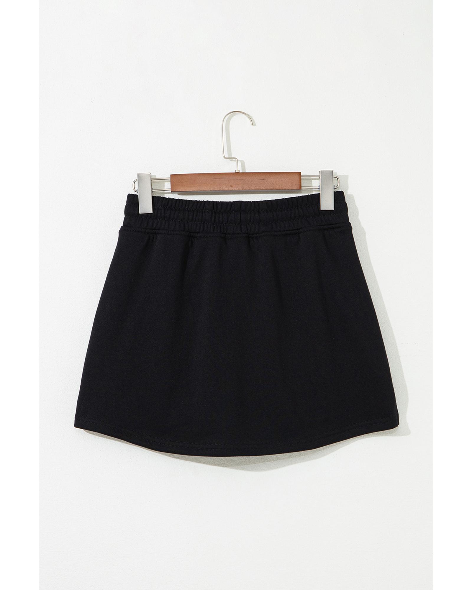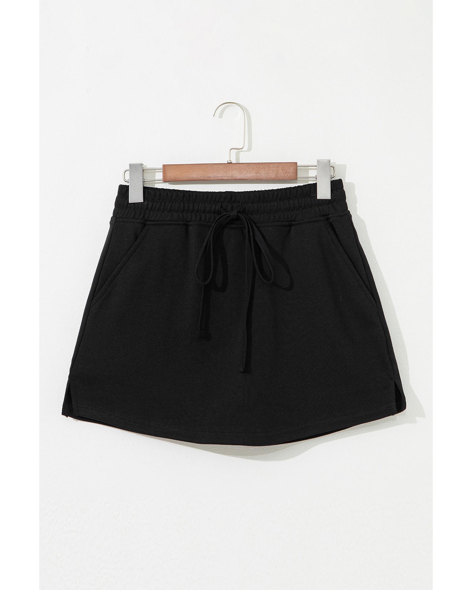 Black French Terry Drawstring Mini Skort with Pockets – S