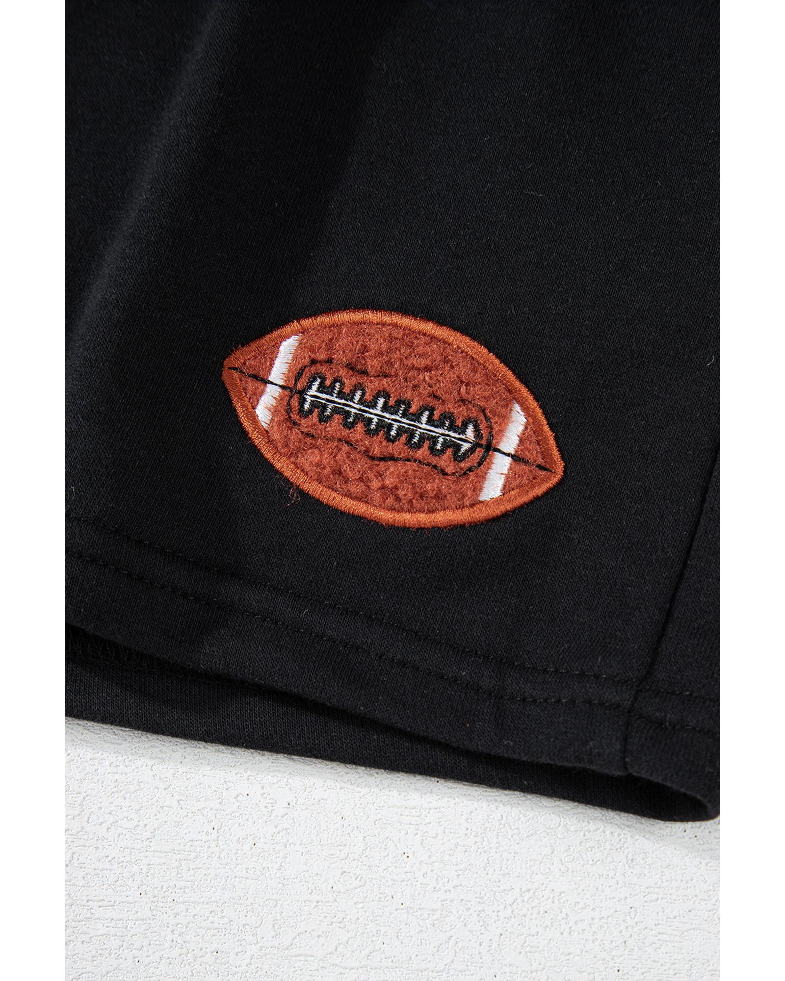 Black GAME DAY Rugby Football Graphic Pullover and Shorts Casual Outfit – S