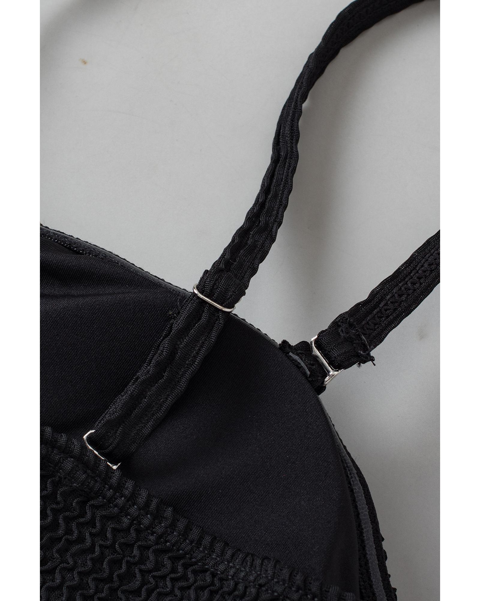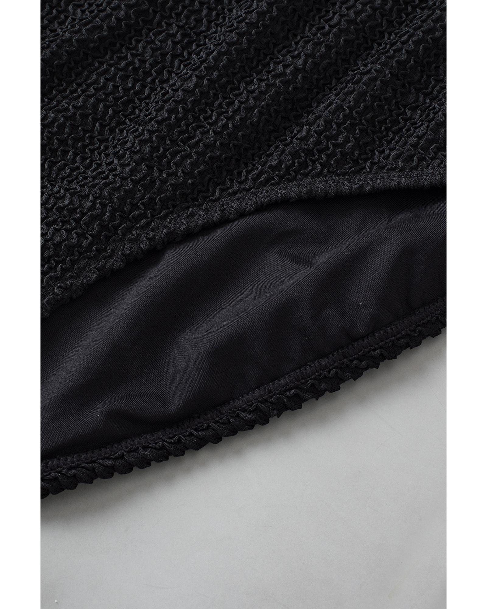 Black Geometric Trim High Waist Strapless One Piece Swimsuit – S