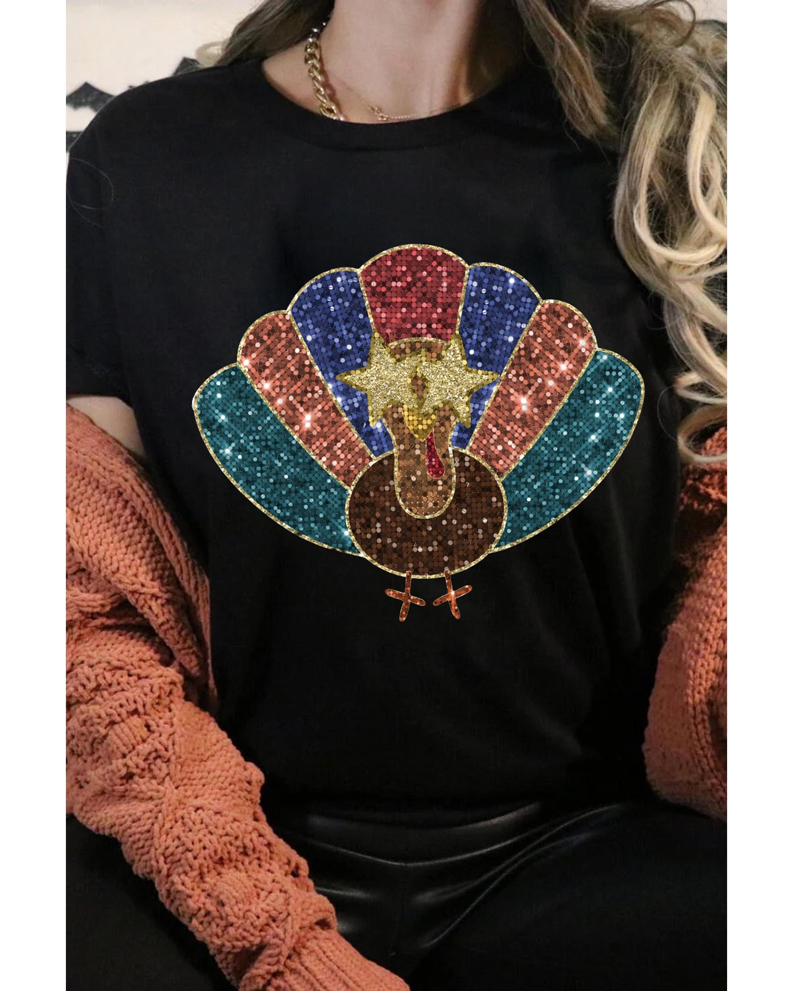 - Black Glitter Turkey Heat Transfer Printing Thanksgiving T