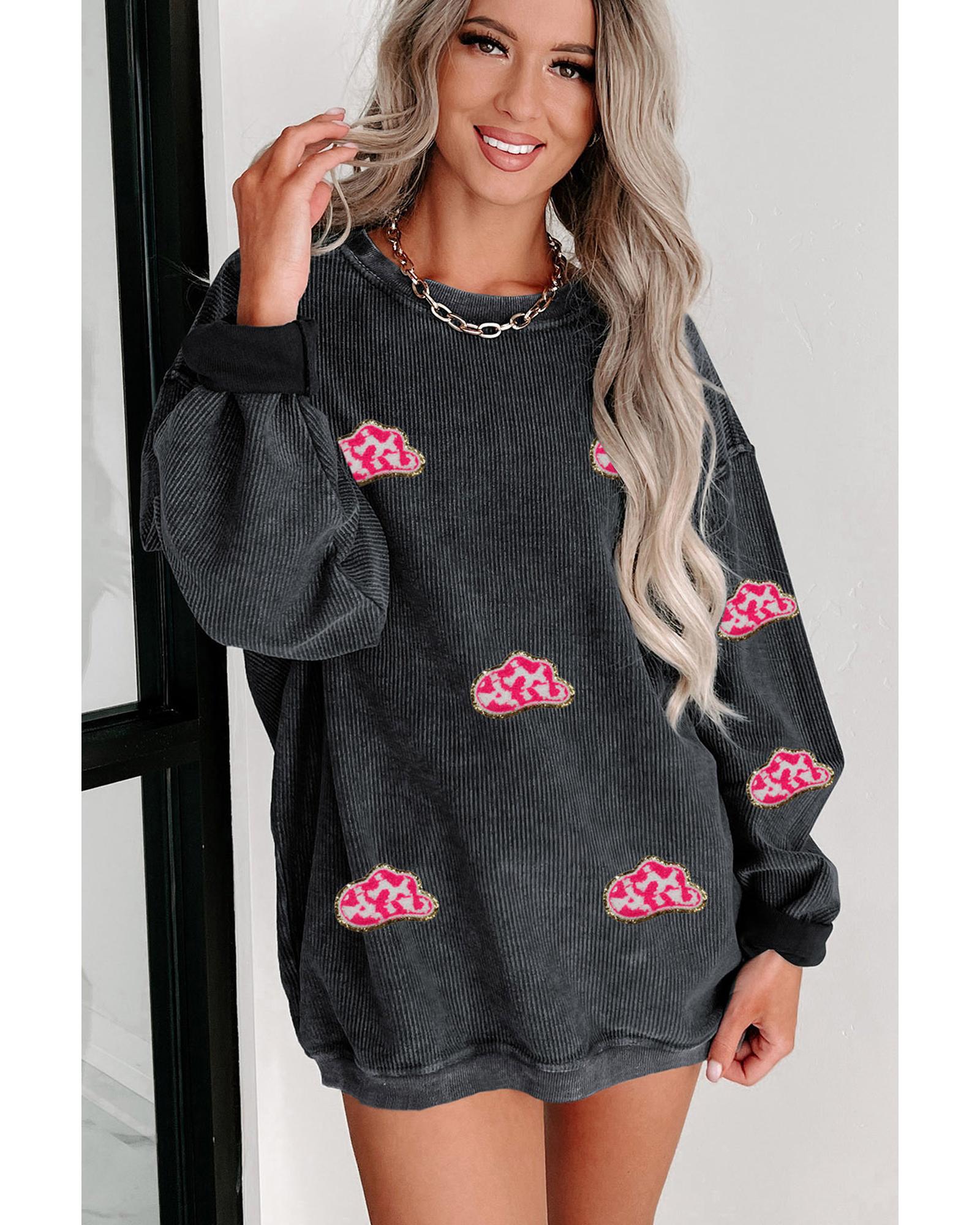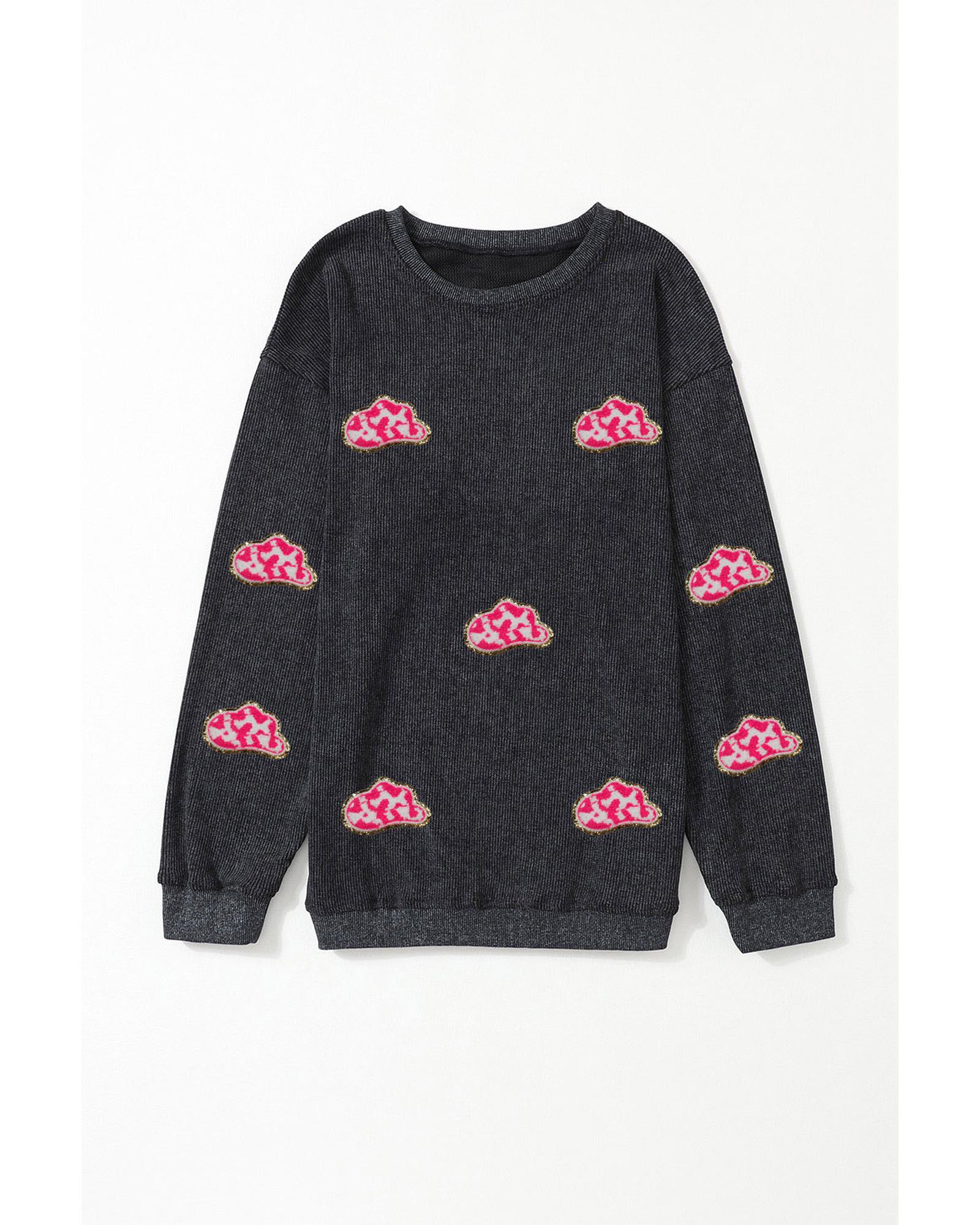 - Black Glittering Cowboy Hat Patched Corded Pullover Sweatshirt