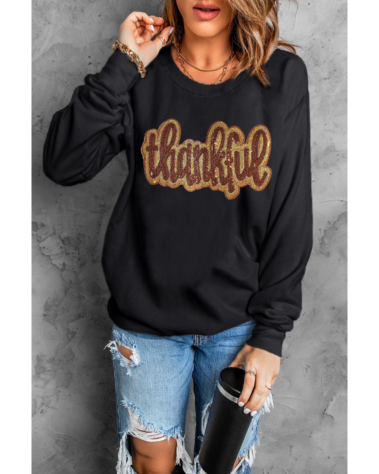 Black Glittering thankful Graphic Drop Shoulder Sweatshirt – L