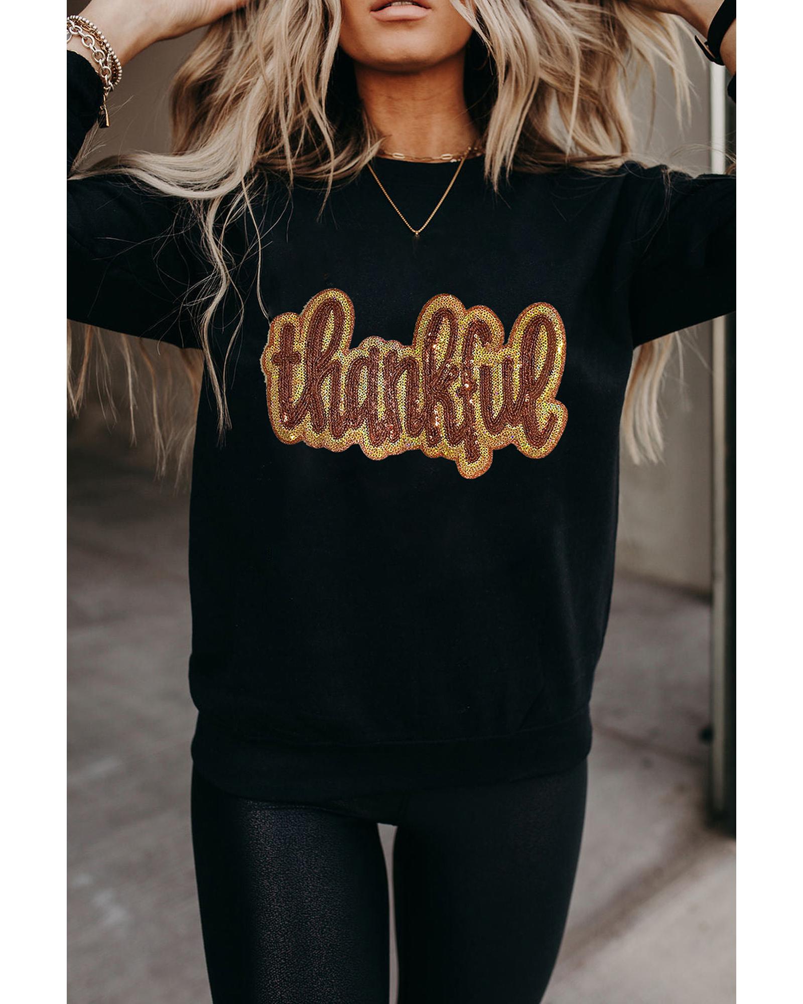 Black Glittering thankful Graphic Drop Shoulder Sweatshirt – M