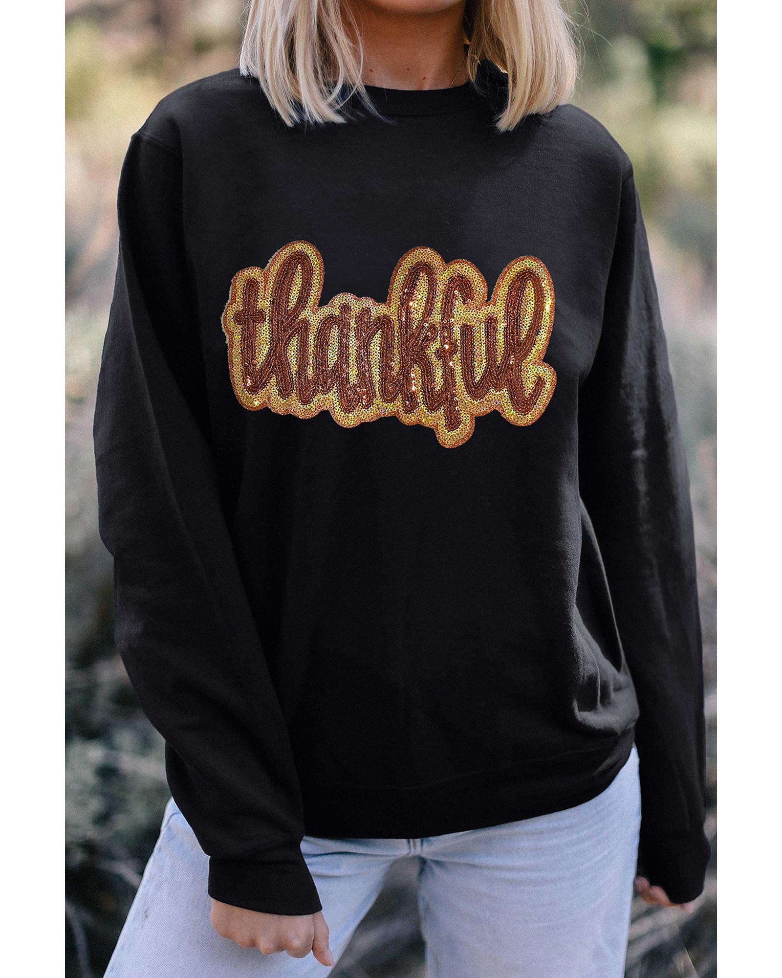 Black Glittering thankful Graphic Drop Shoulder Sweatshirt – XL