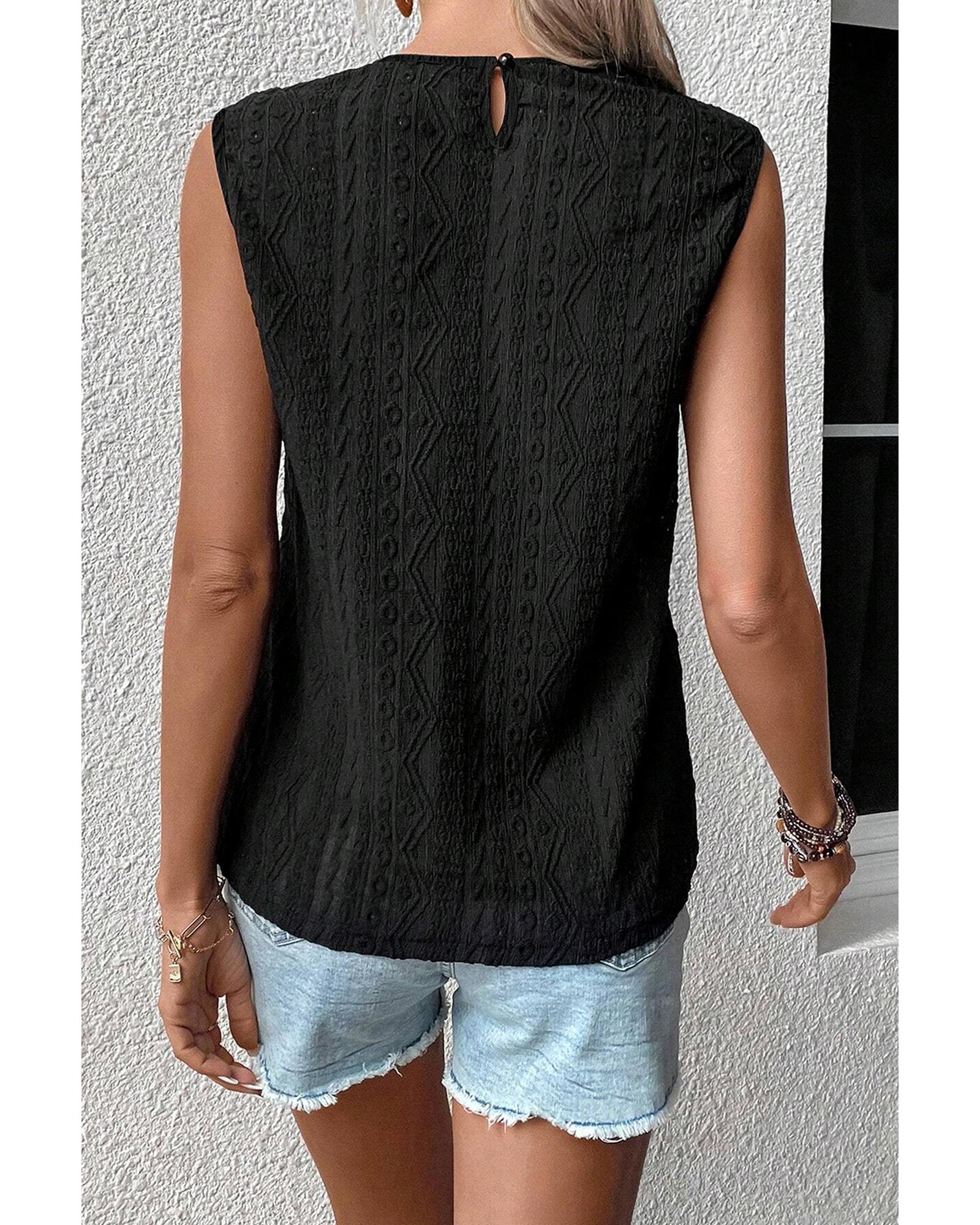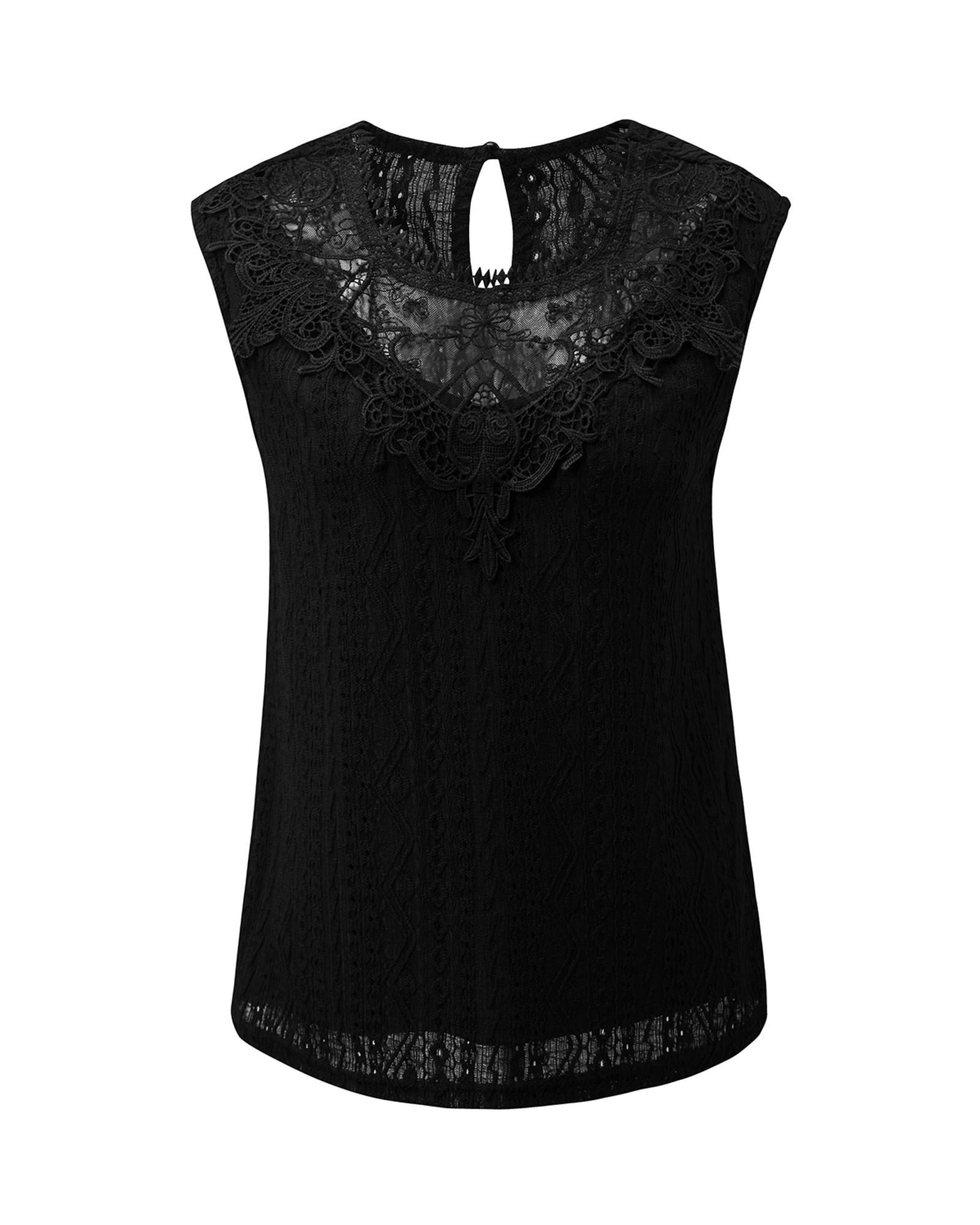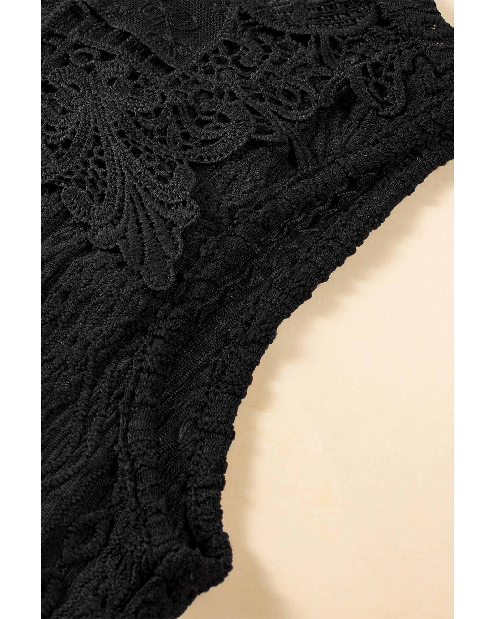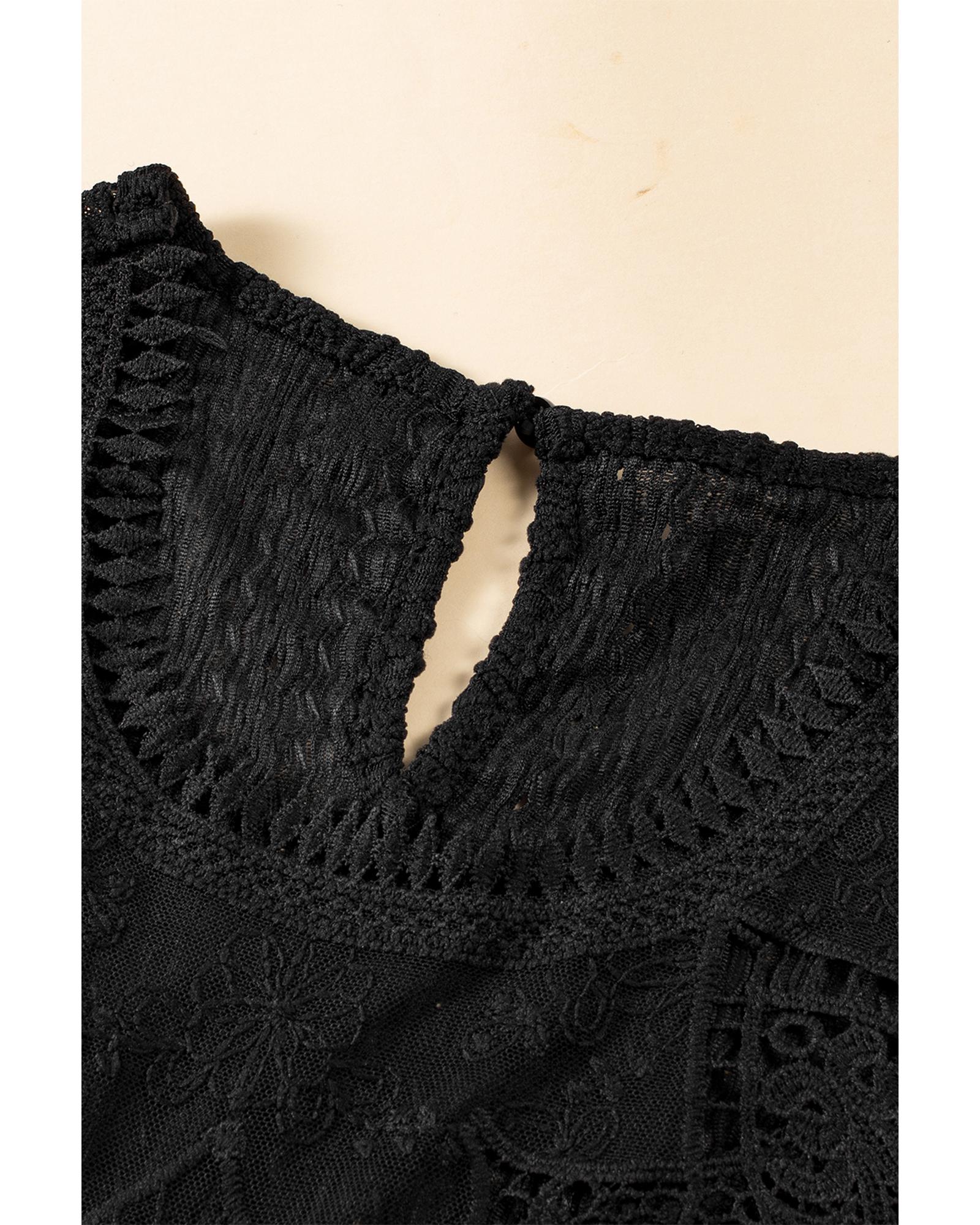 Black Guipure Lace Crochet Keyhole Back Tank Top – XL