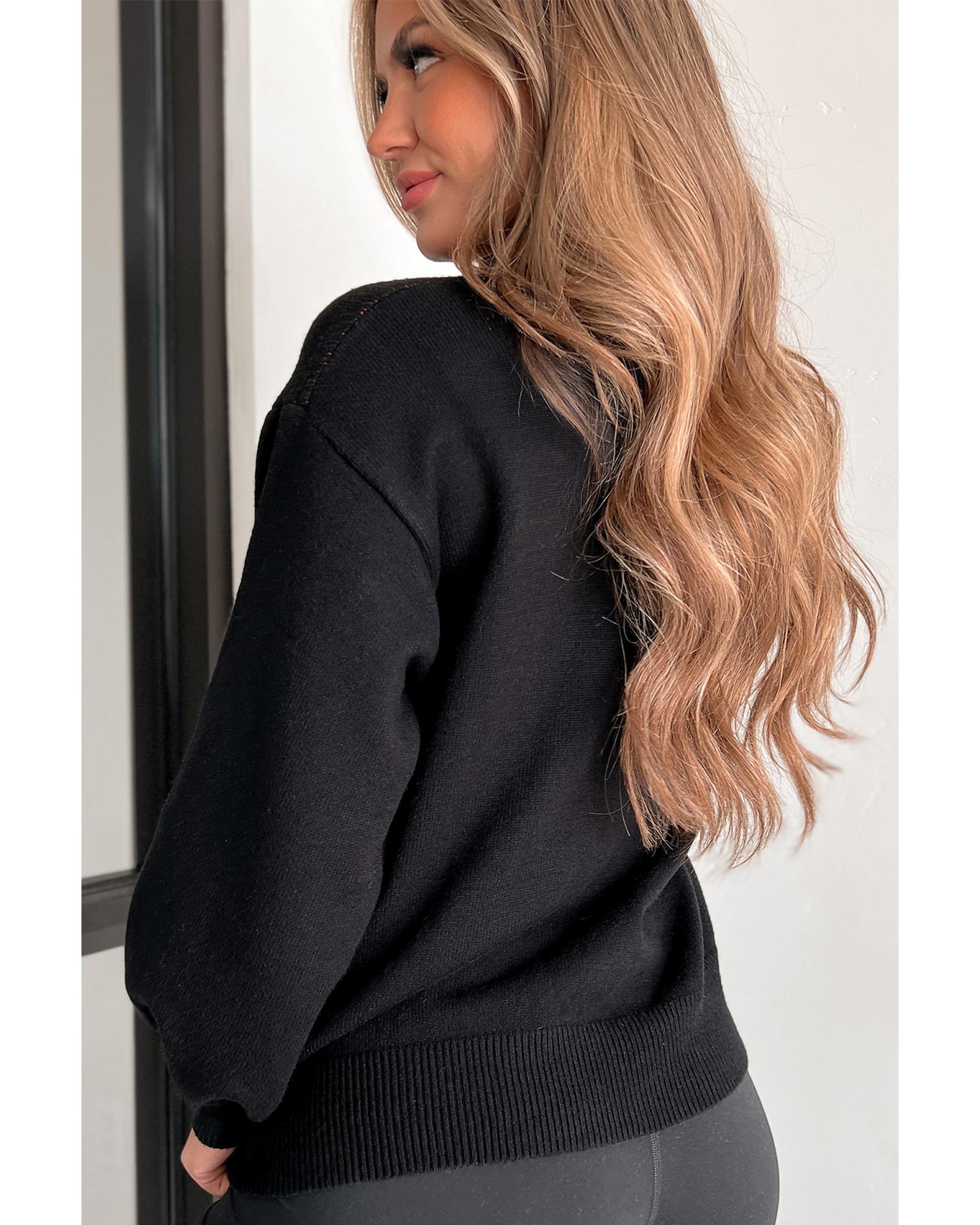 Black Halloween Pumpkin Face Pattern Drop Shoulder Sweater – M