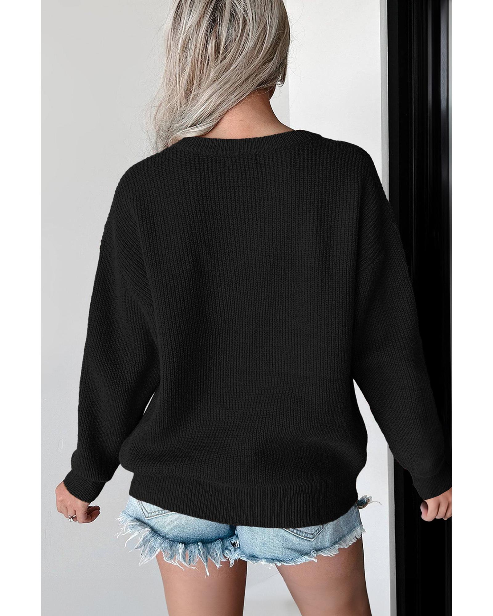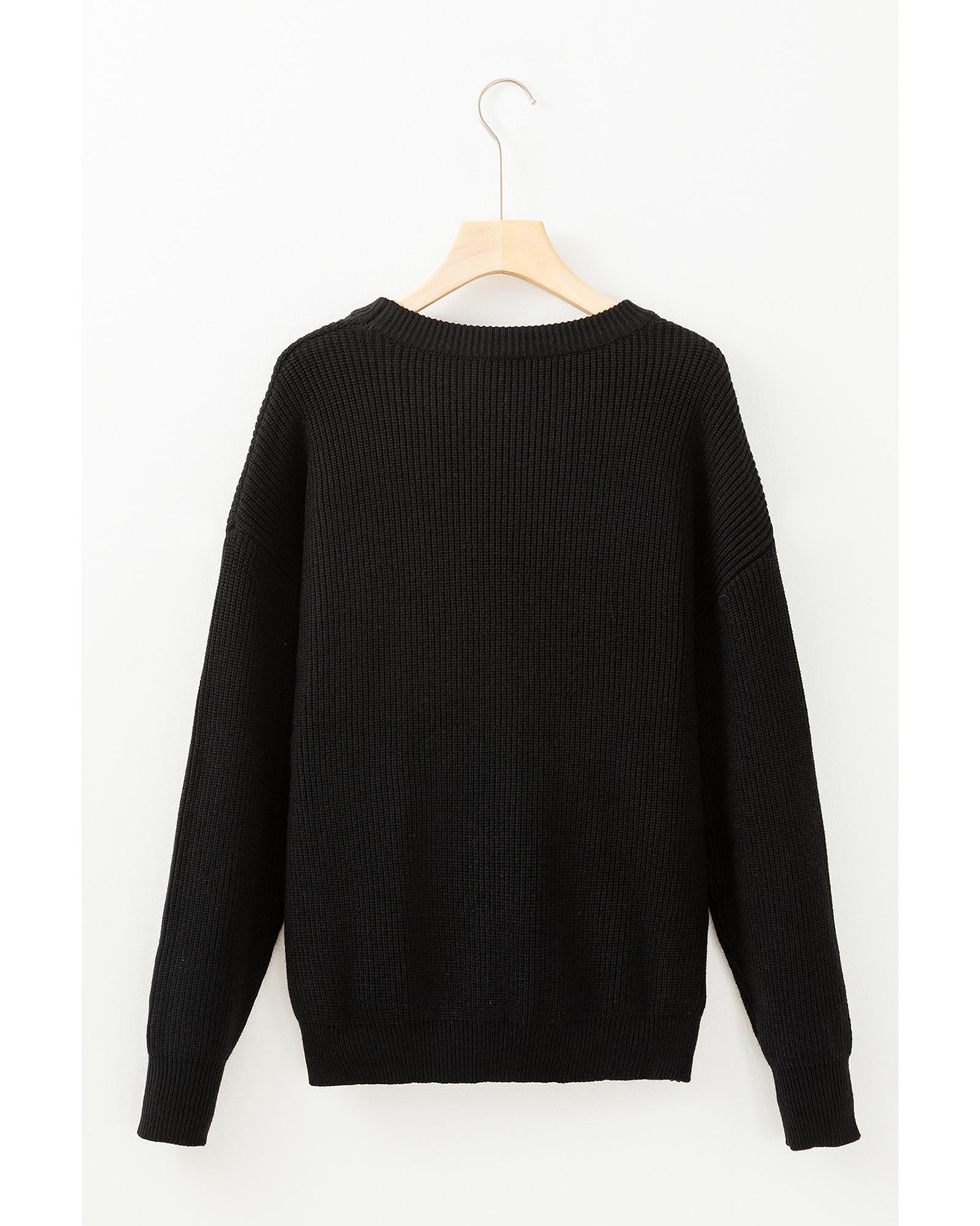 Bonbon Three Tone Contrast Round Neck Loose Sweater - S