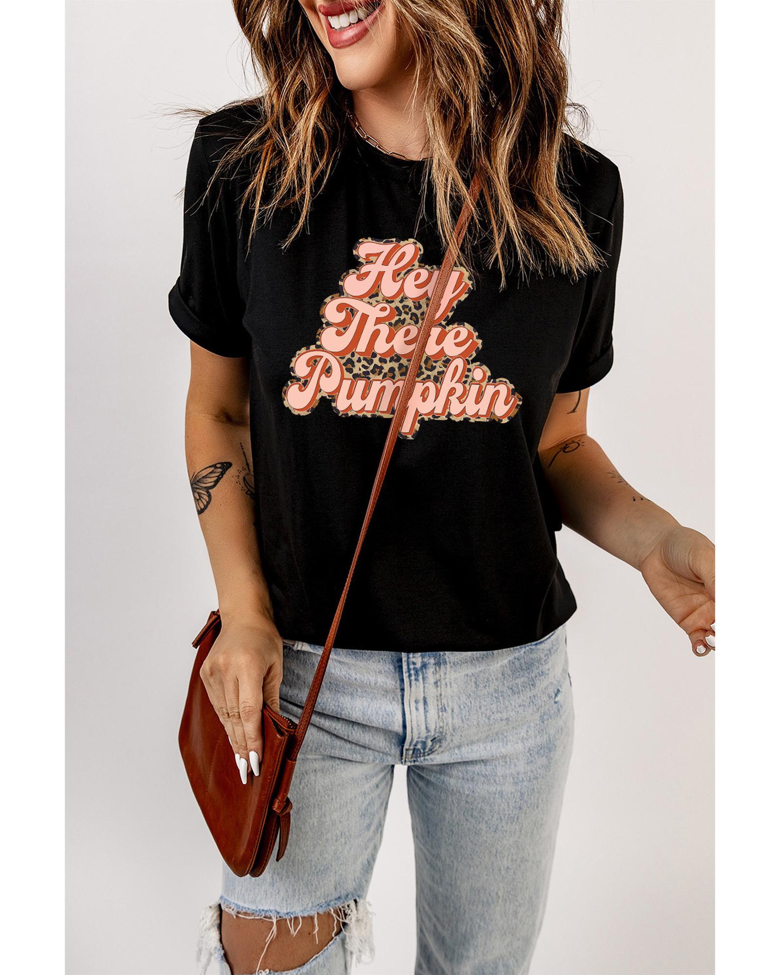 Stylish and trendy short - sleeve graphic tee for women Unique leopard graphic design with Hey There Pumpkin text Made from high