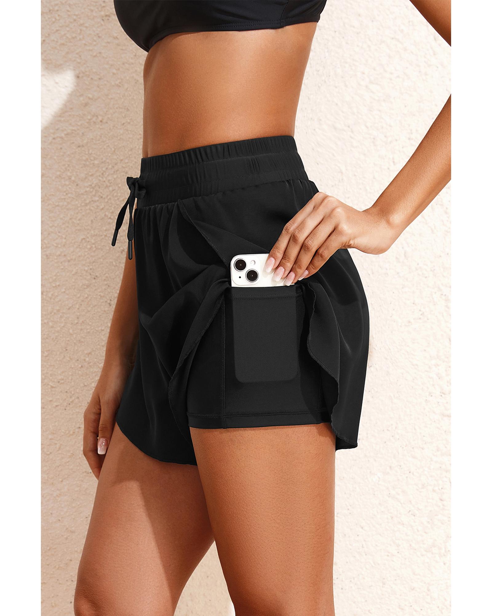 Black High Waisted Drawstring 2-in-1 Side Pocket Color Block Bikini Shorts - M Original price was: $57.99.Current price is: $30.99.