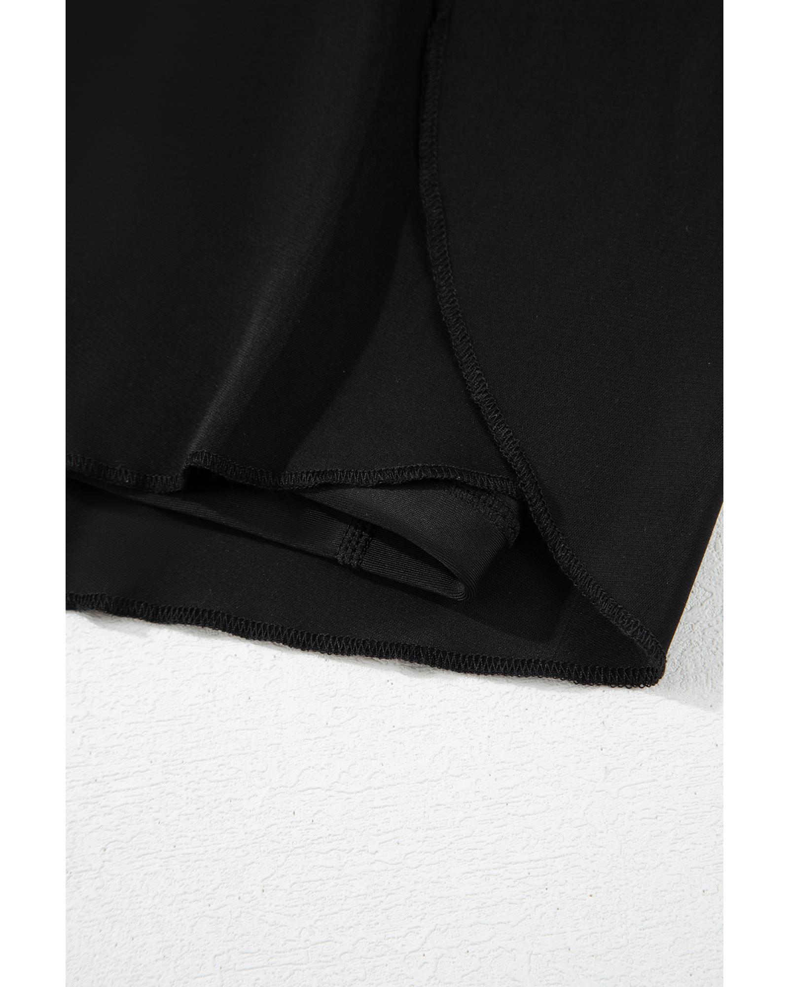 Black High Waisted Drawstring 2-in-1 Side Pocket Color Block Bikini Shorts – L