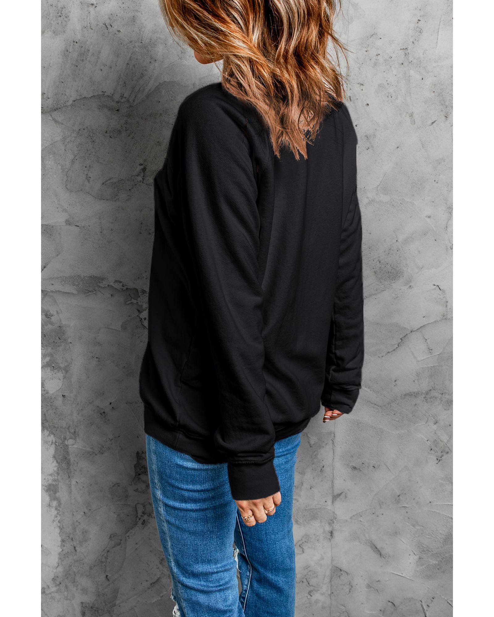 Black HO HO HO Christmas Tree Graphic Pullover Sweatshirt – M