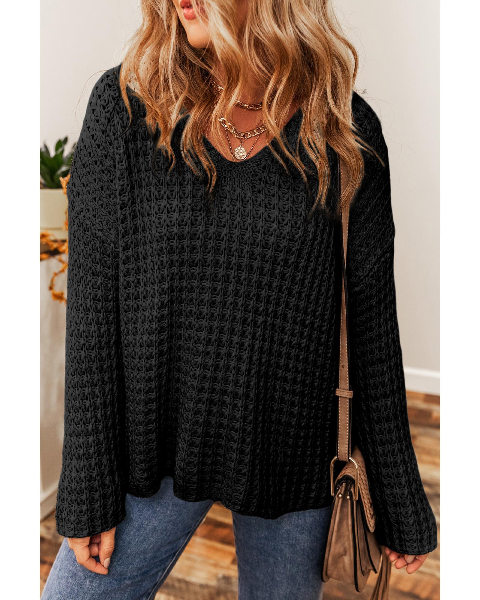 Beau Blue Flower Detail Knitted Notched Neck Sweater - 2XL