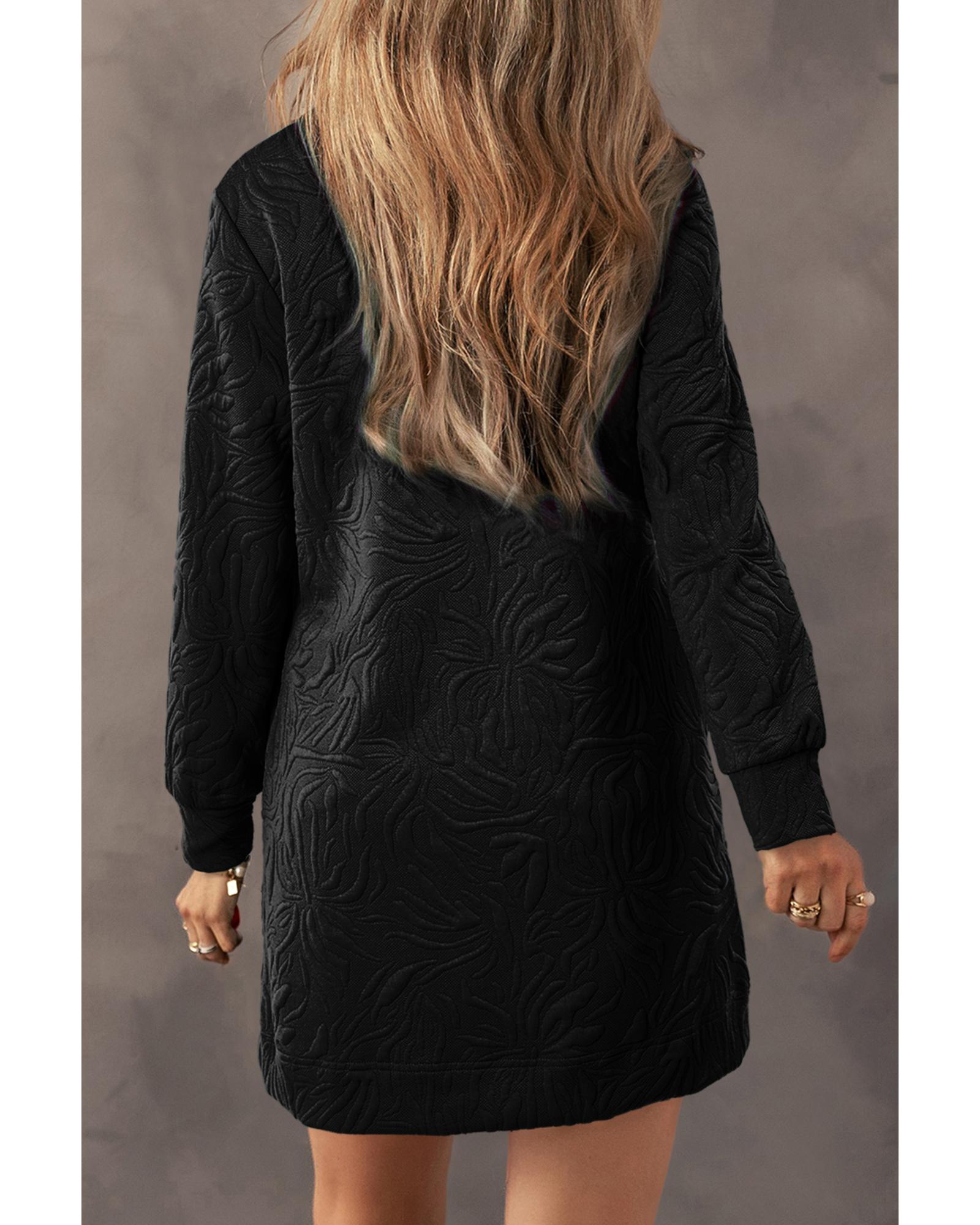Black Jacquard Textured Quarter Zipper Shift Mini Dress – L