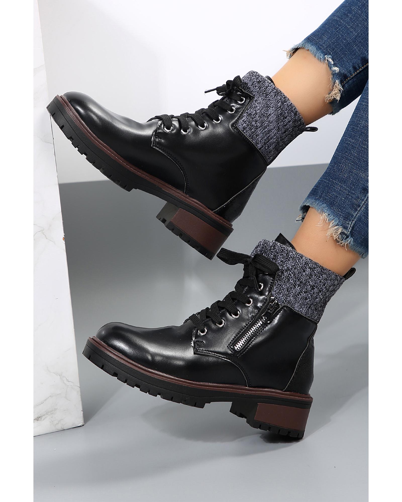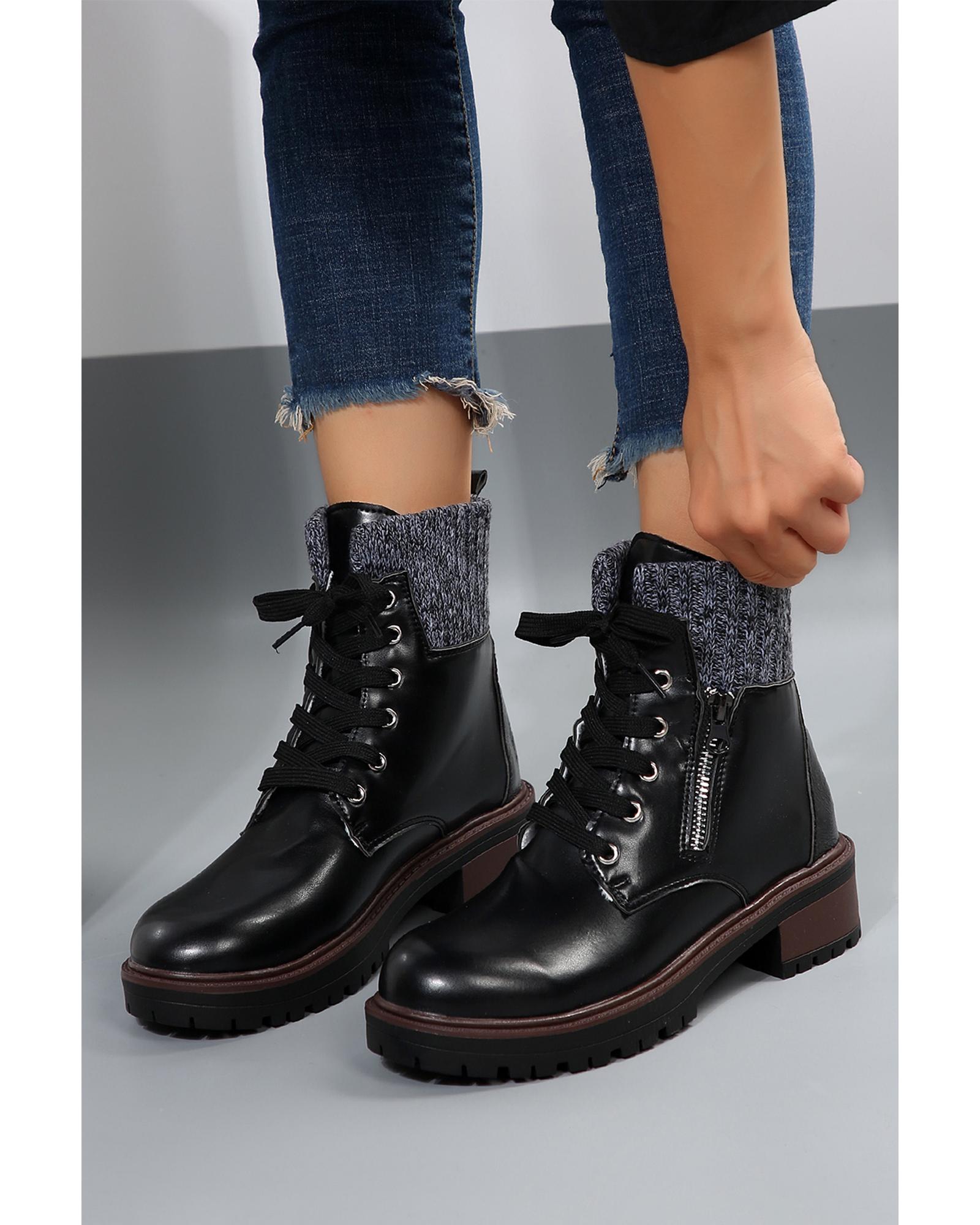 Black Knitted Patched Lace-up Heeled Ankle Boots – 39 EU