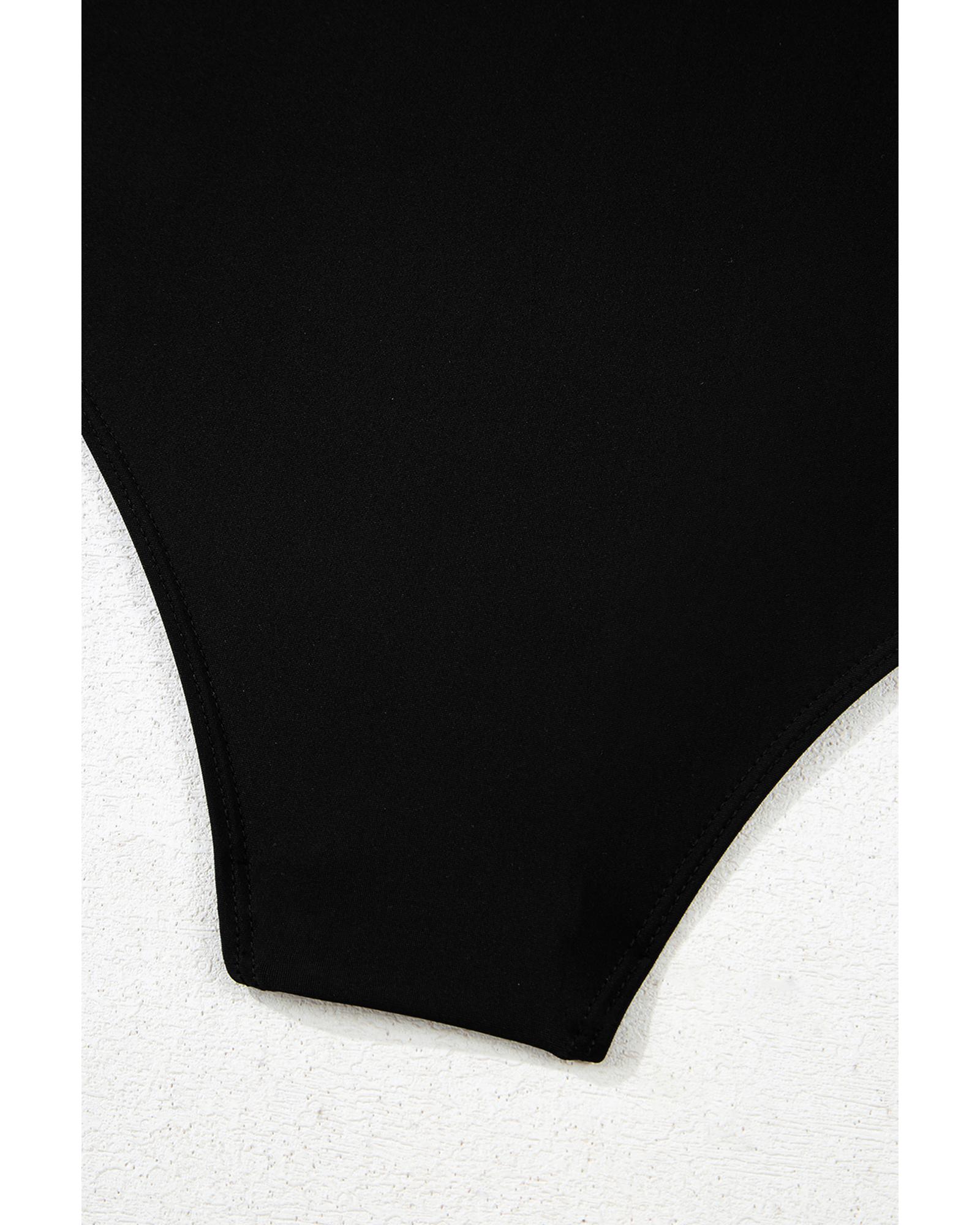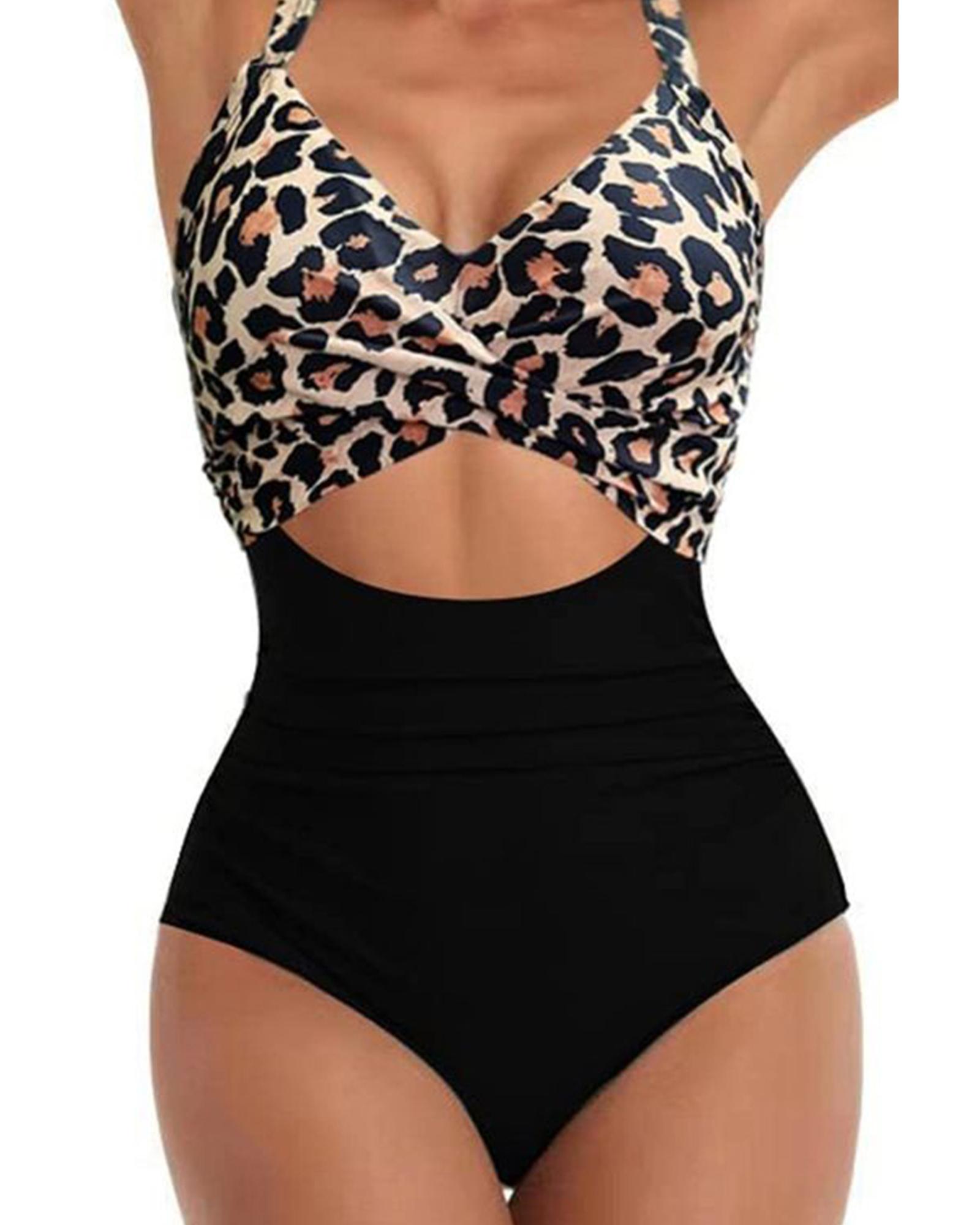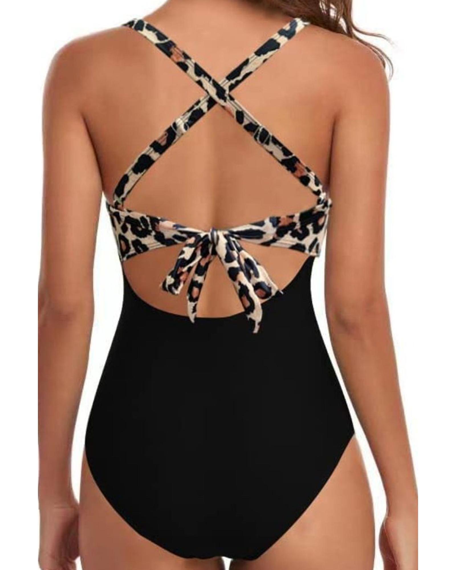 Black Leopard 2-tone Crossed Cutout Backless Monokini – S
