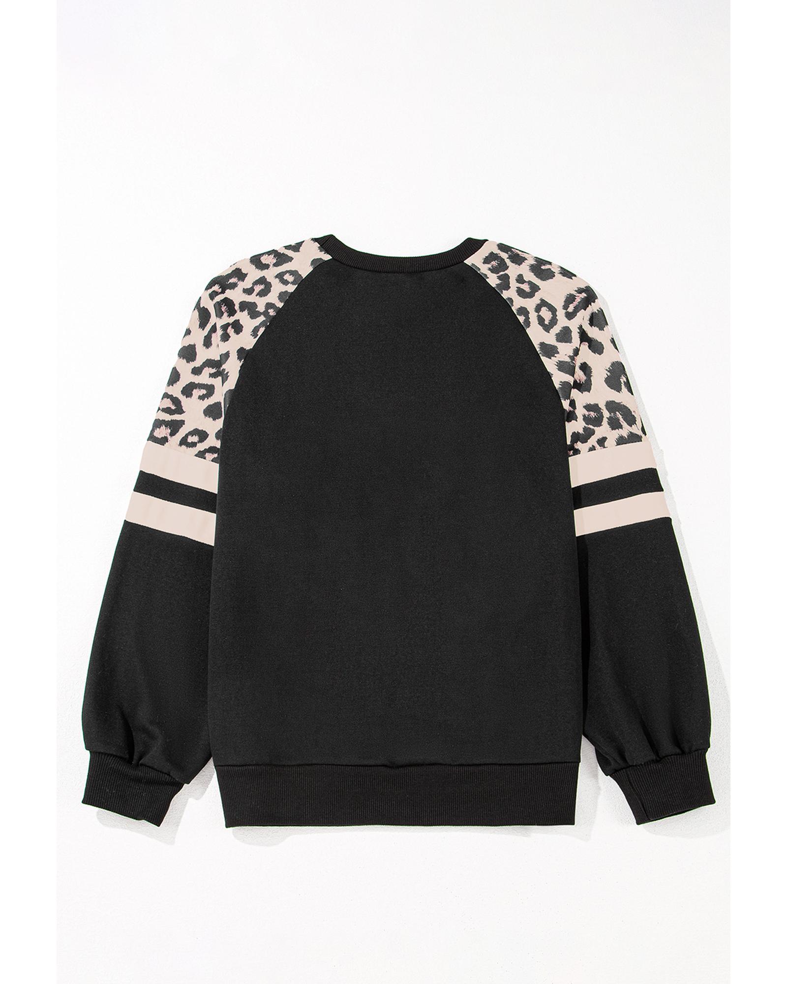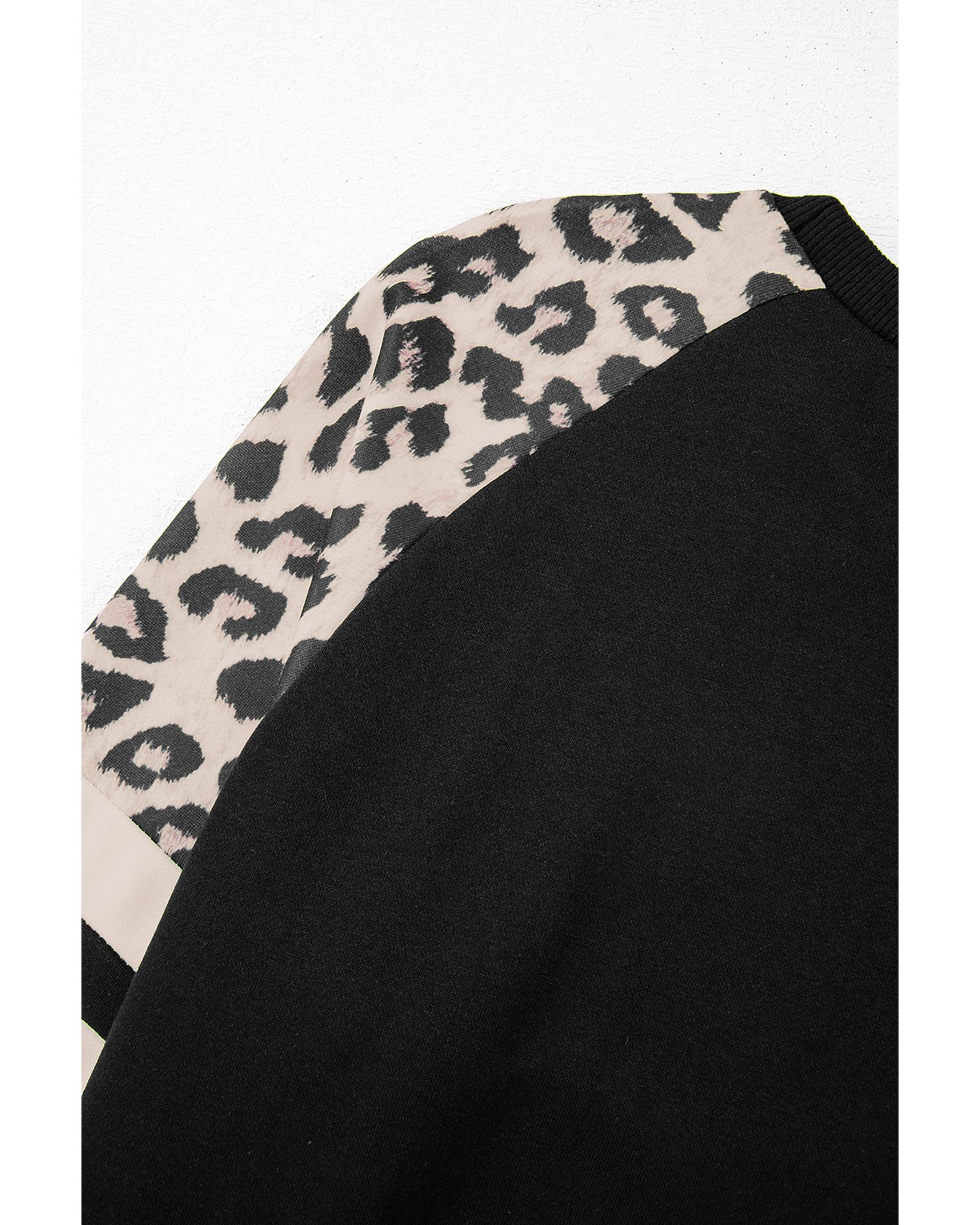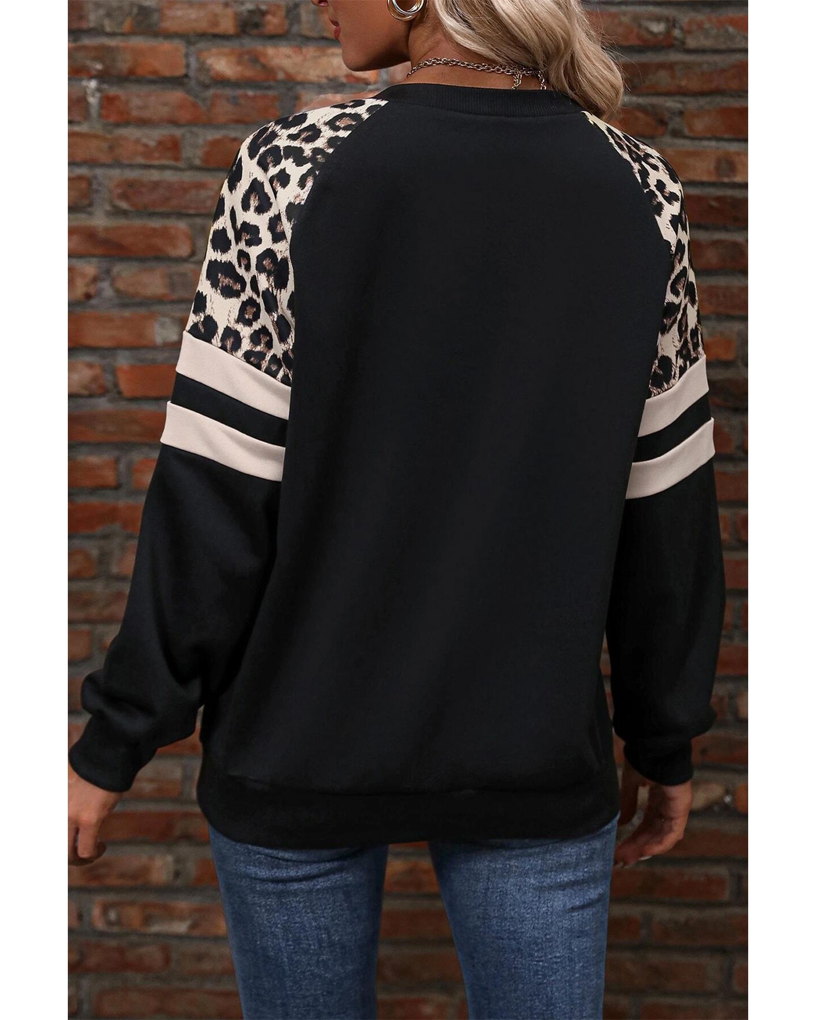 • Black Leopard Print Colorblock Raglan Sleeve Sweatshirt