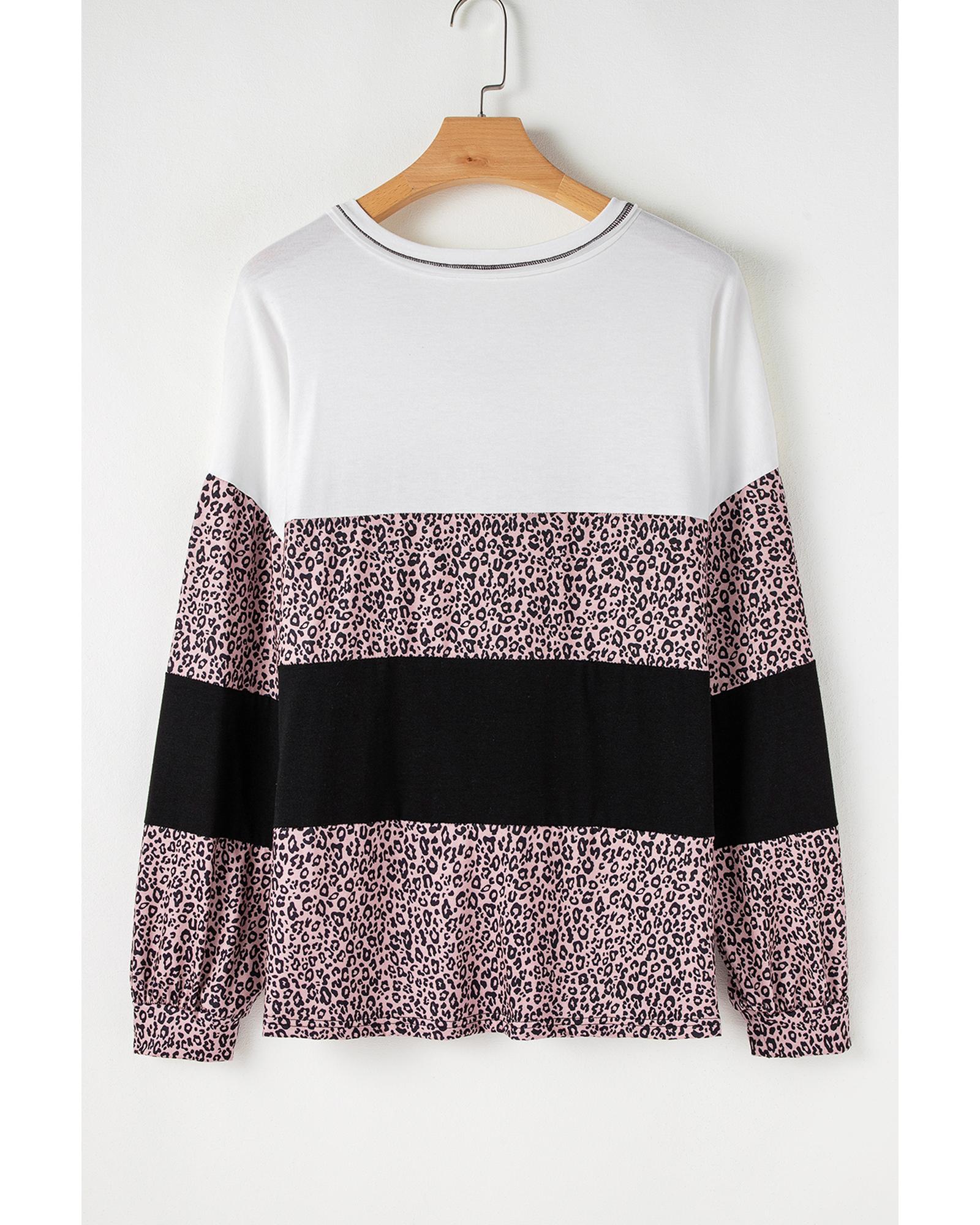 Black Leopard Print Colorblock V Neck Long Sleeve Plus Size Top – 4X