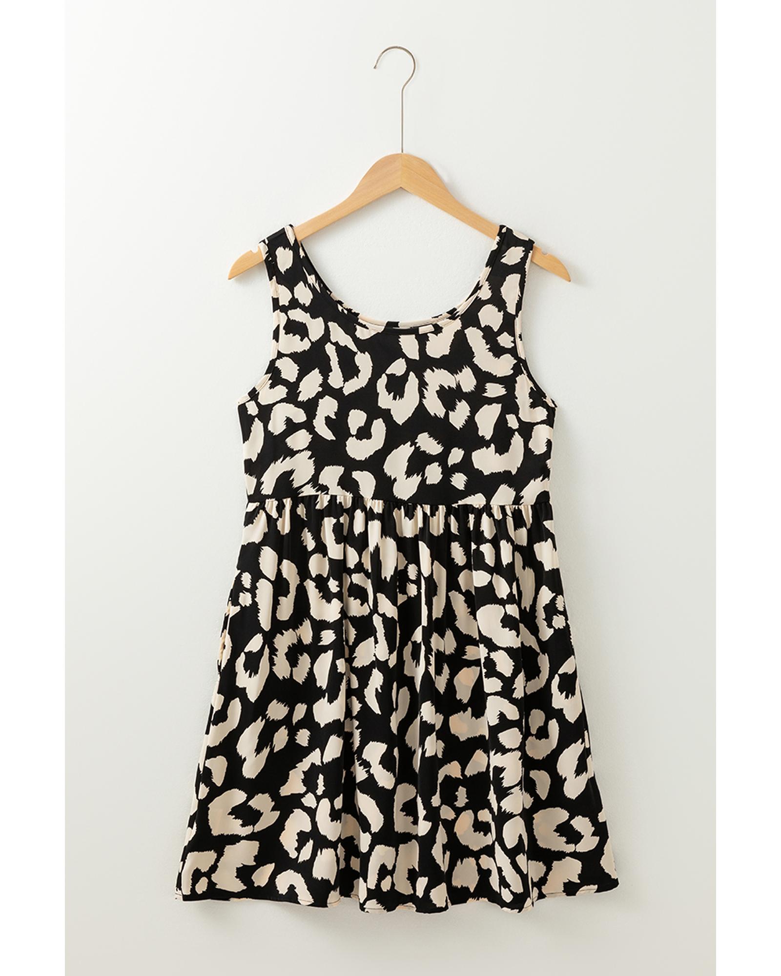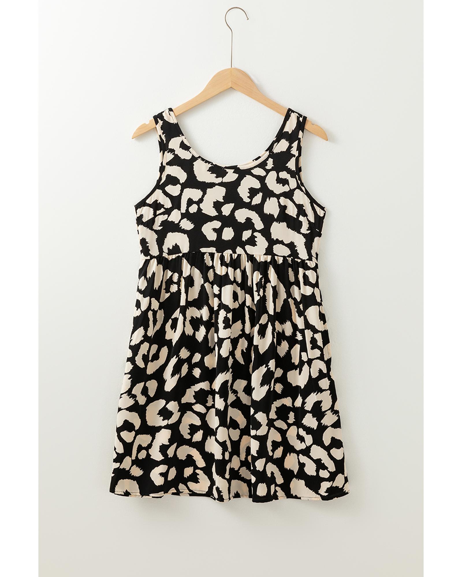 Black Leopard Print U Neck Sleeveless High Waist Dress - S