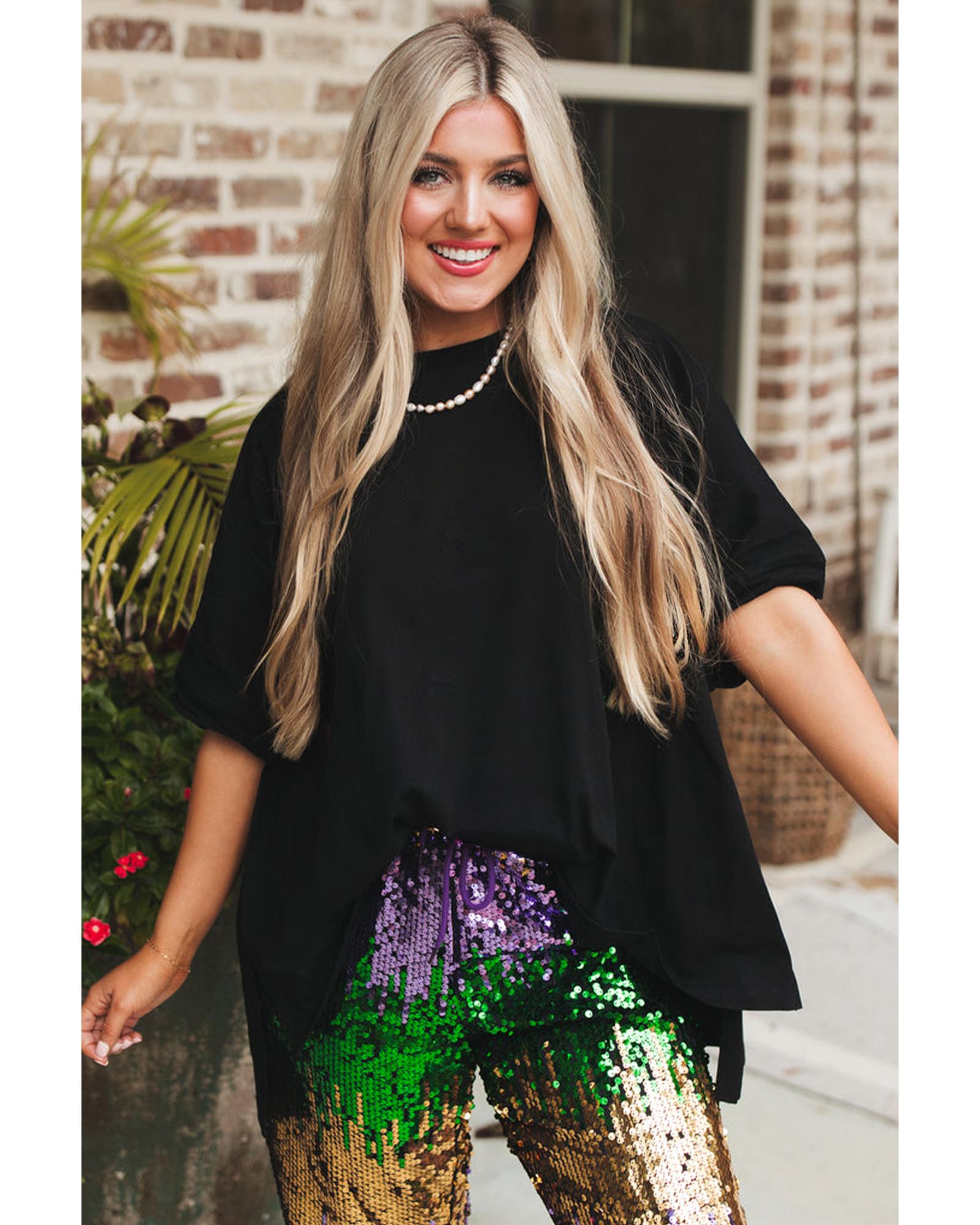 - Black Loose Half Sleeve Hi Low Hem T Shirt