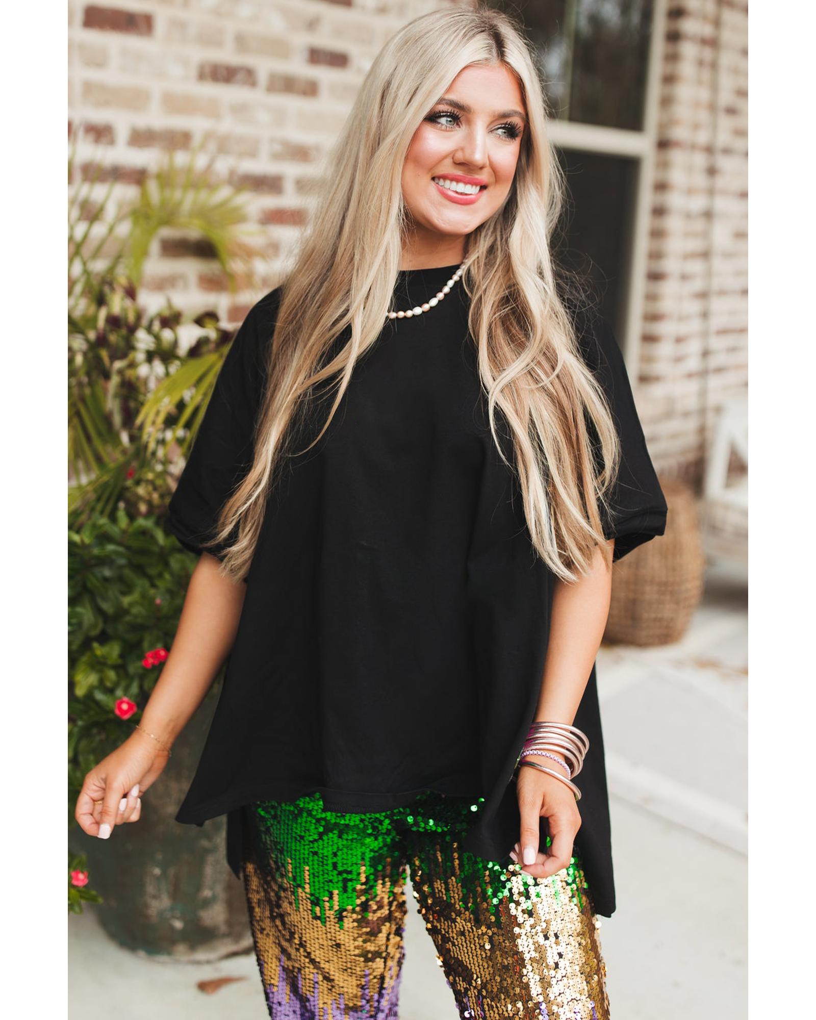 Black Loose Half Sleeve Hi Low Hem T Shirt – XL