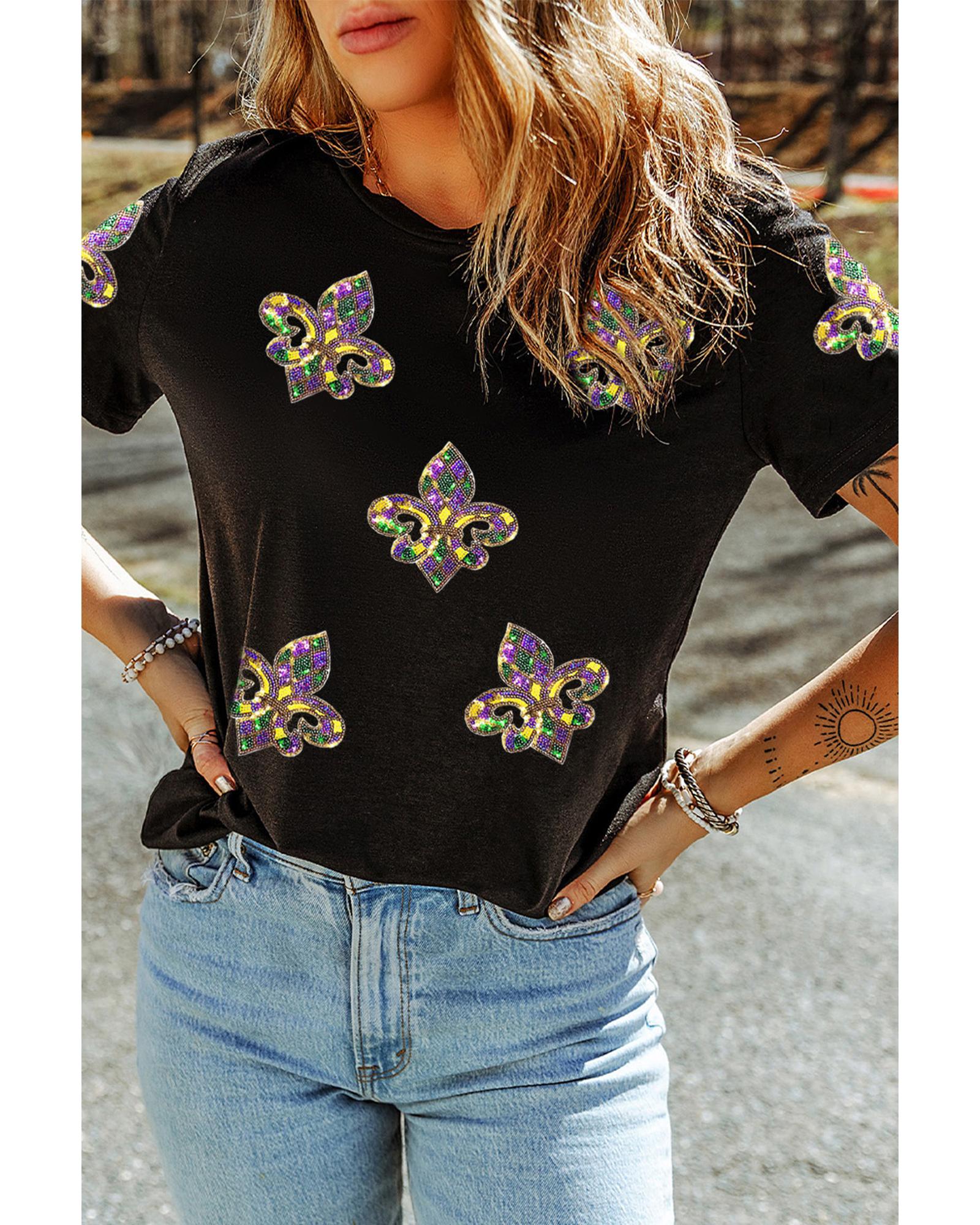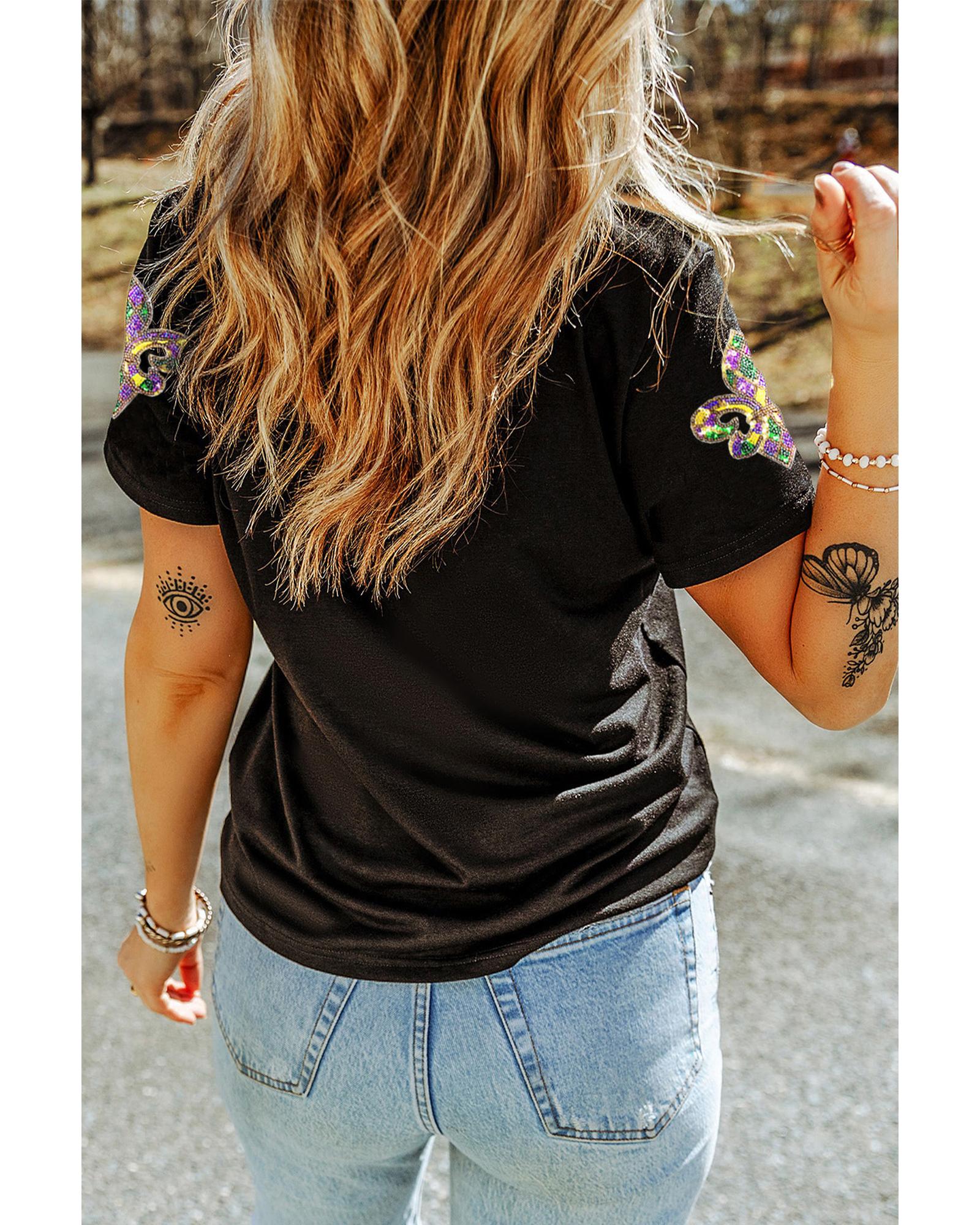 Black Maid Gras Sequin Fleur de Lis Graphic T Shirt – 2XL