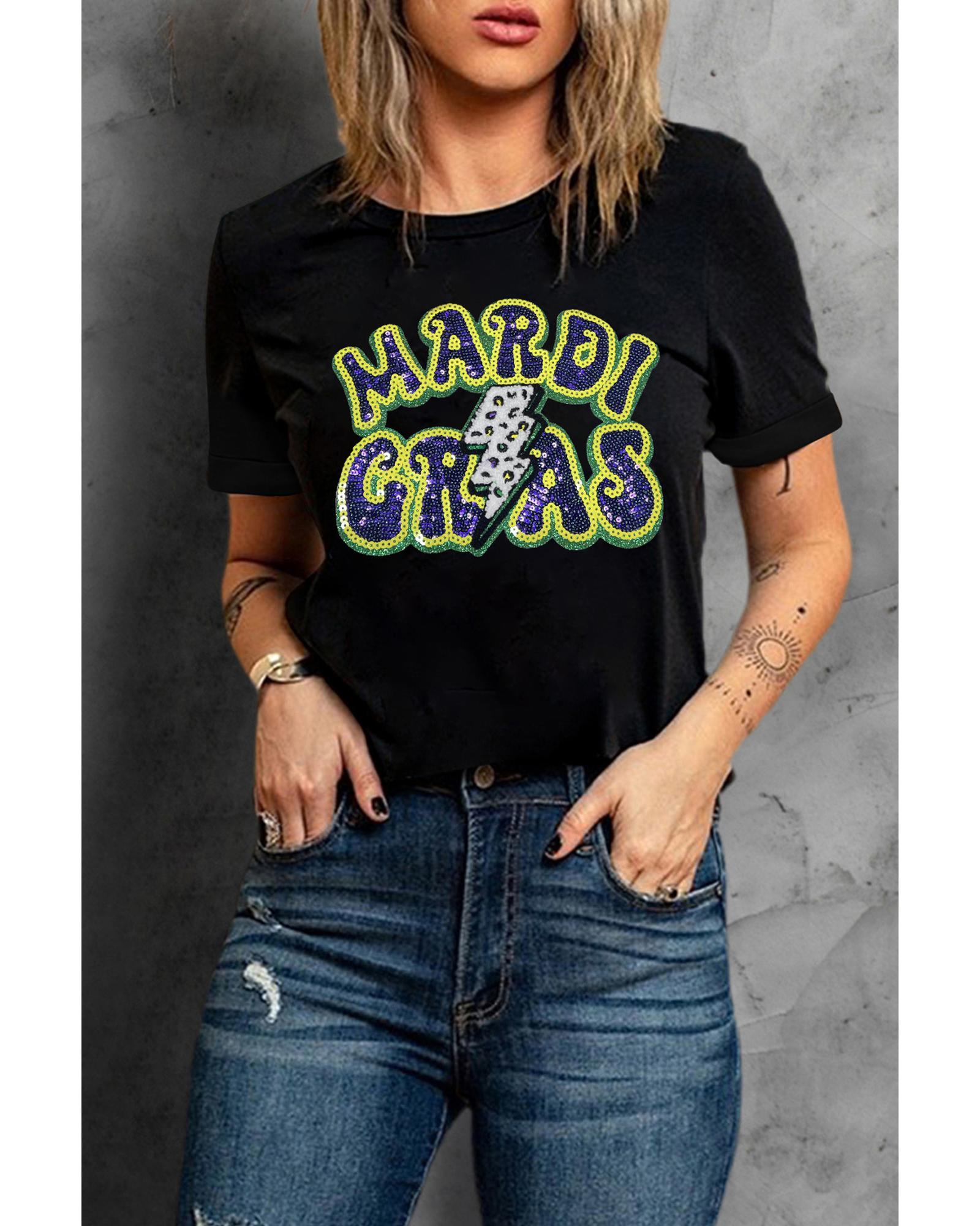 Black MARDI GRAS Lightning Graphic Short Sleeve Top – S