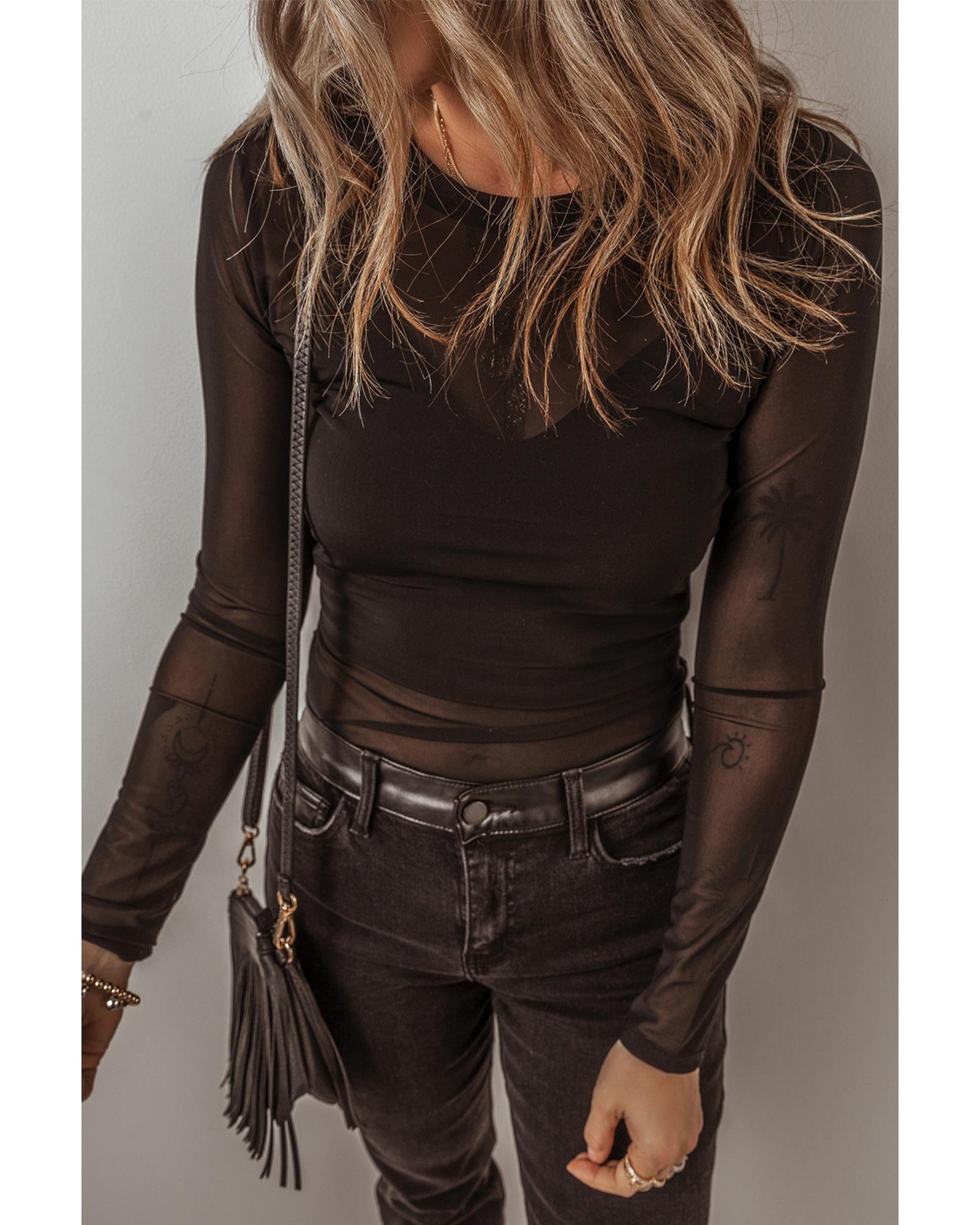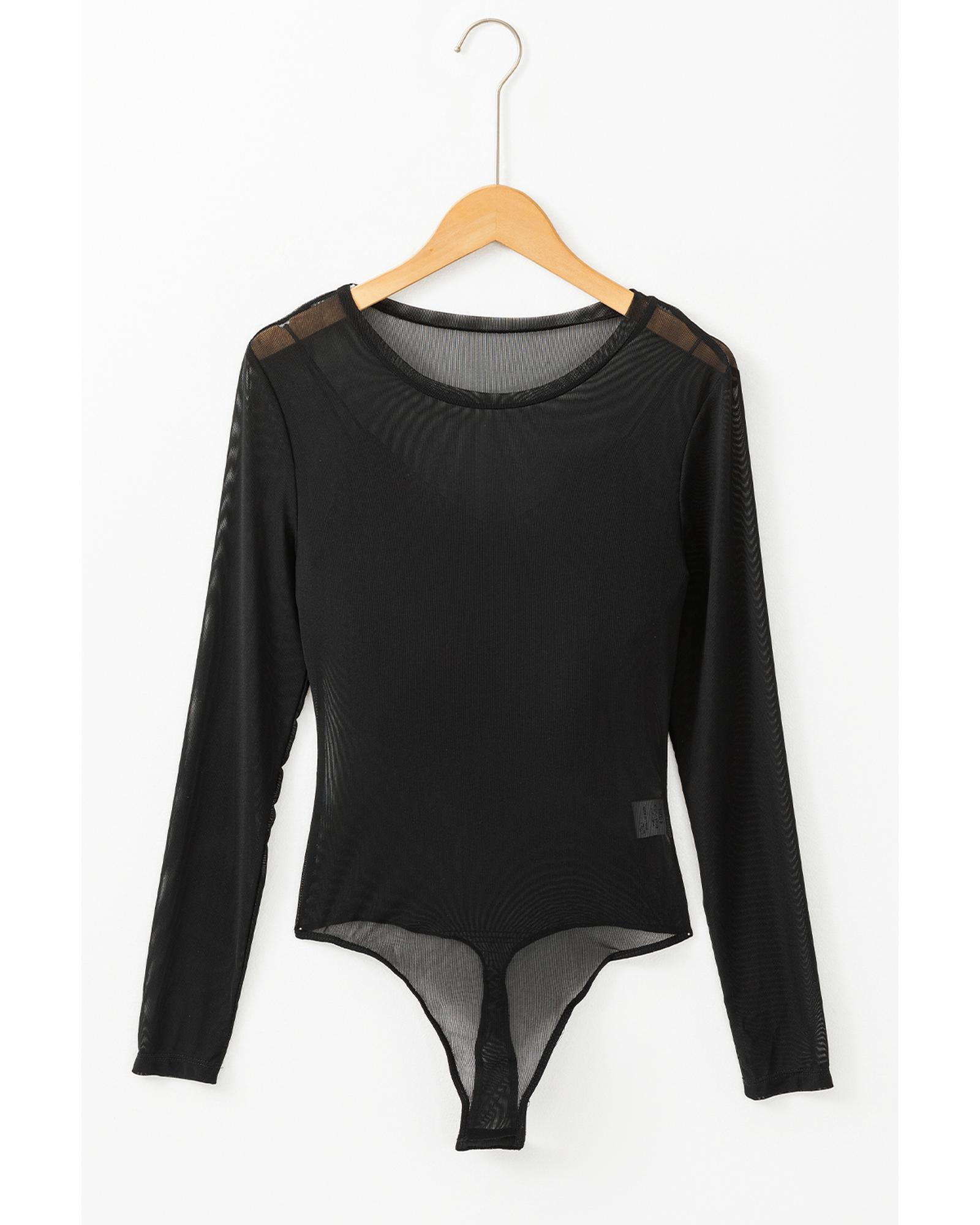 - Black Mesh Long Sleeve Slim Fit Bodysuit