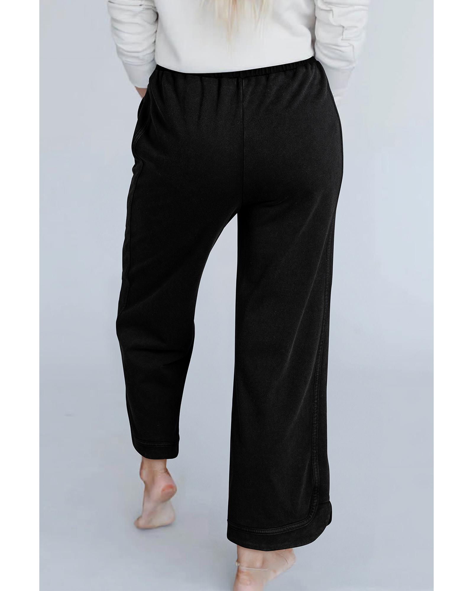 Black Mineral Wash Exposed Seam Wide Leg Pants – S