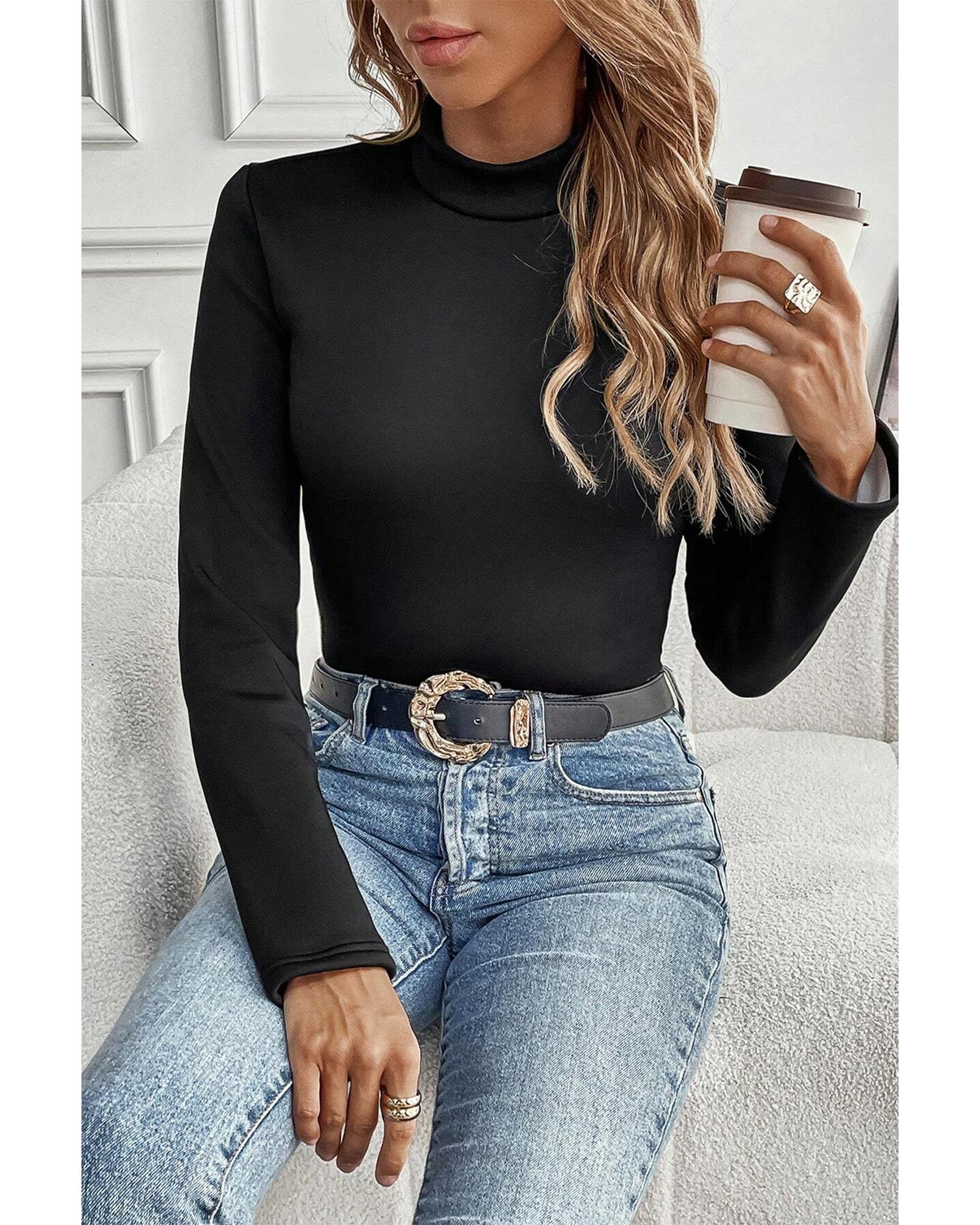 Black Mock Neck Thermal Lined Long Sleeve Tee – M