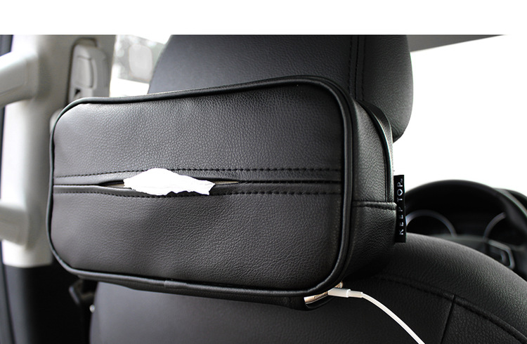 Keep your car tidy and organized with this premium PU leather car tissue box holder. Designed with durability and functionality in mind, this tissue holder is suitable for various car models and can be easily mounted on the headrest or sun visor.
