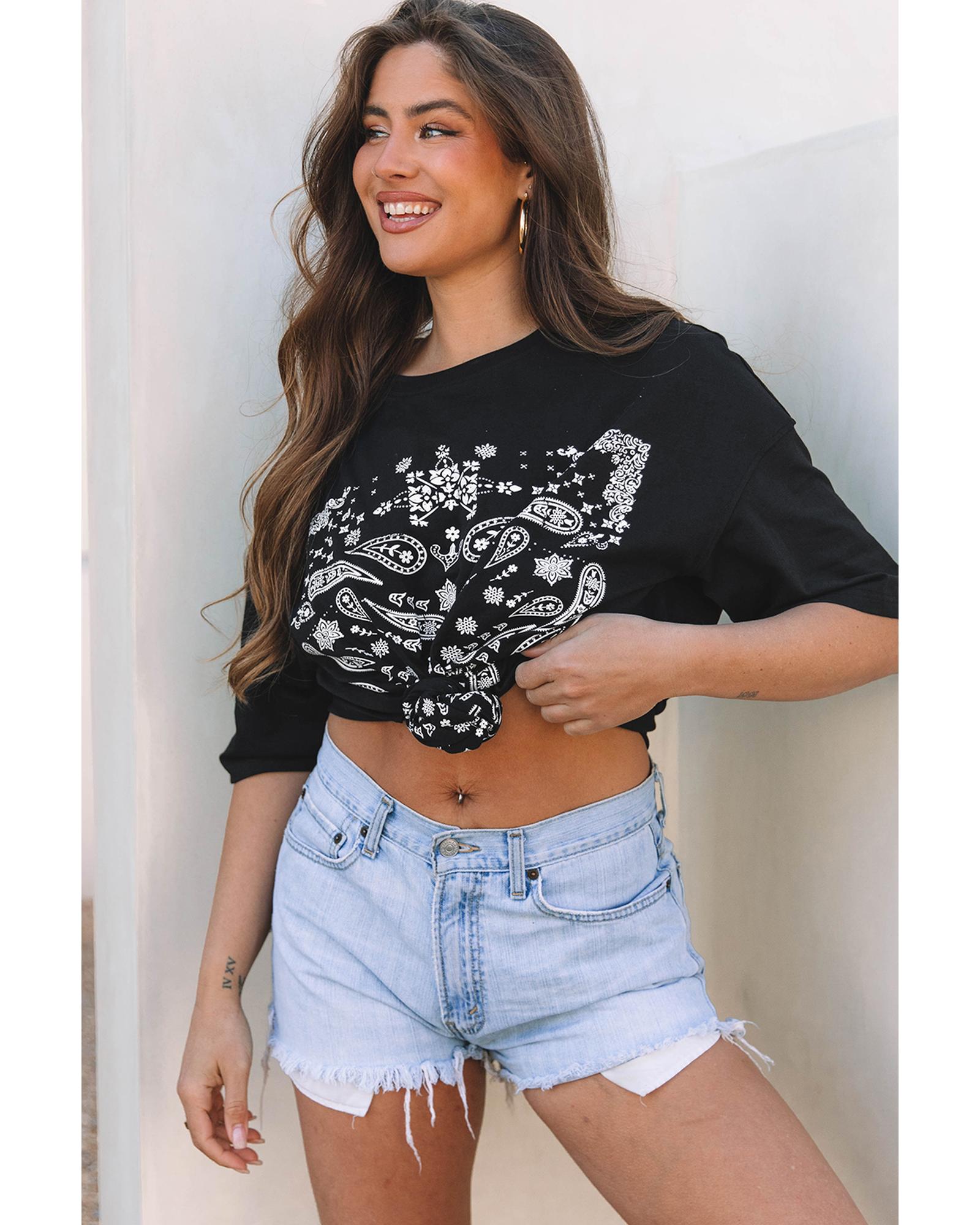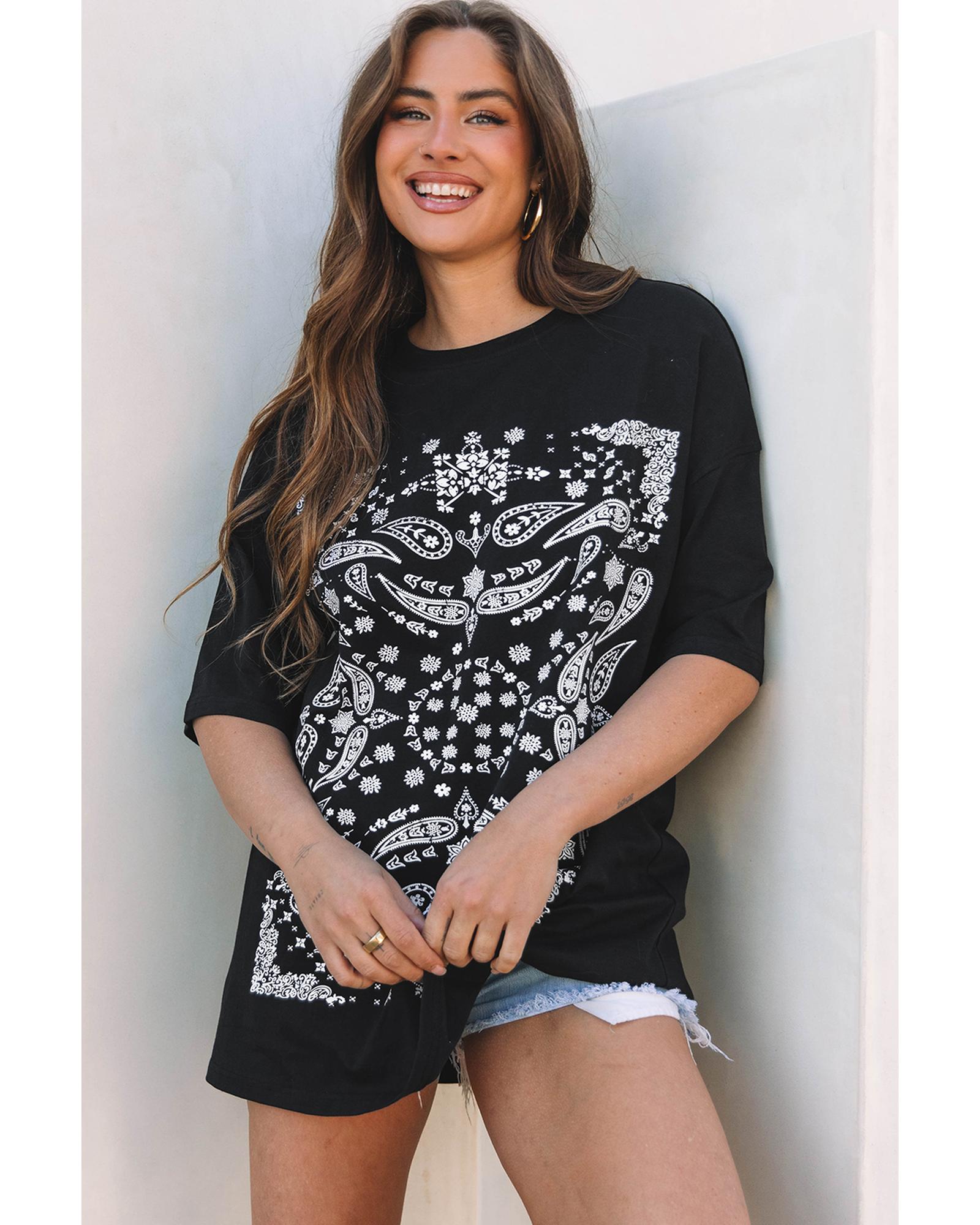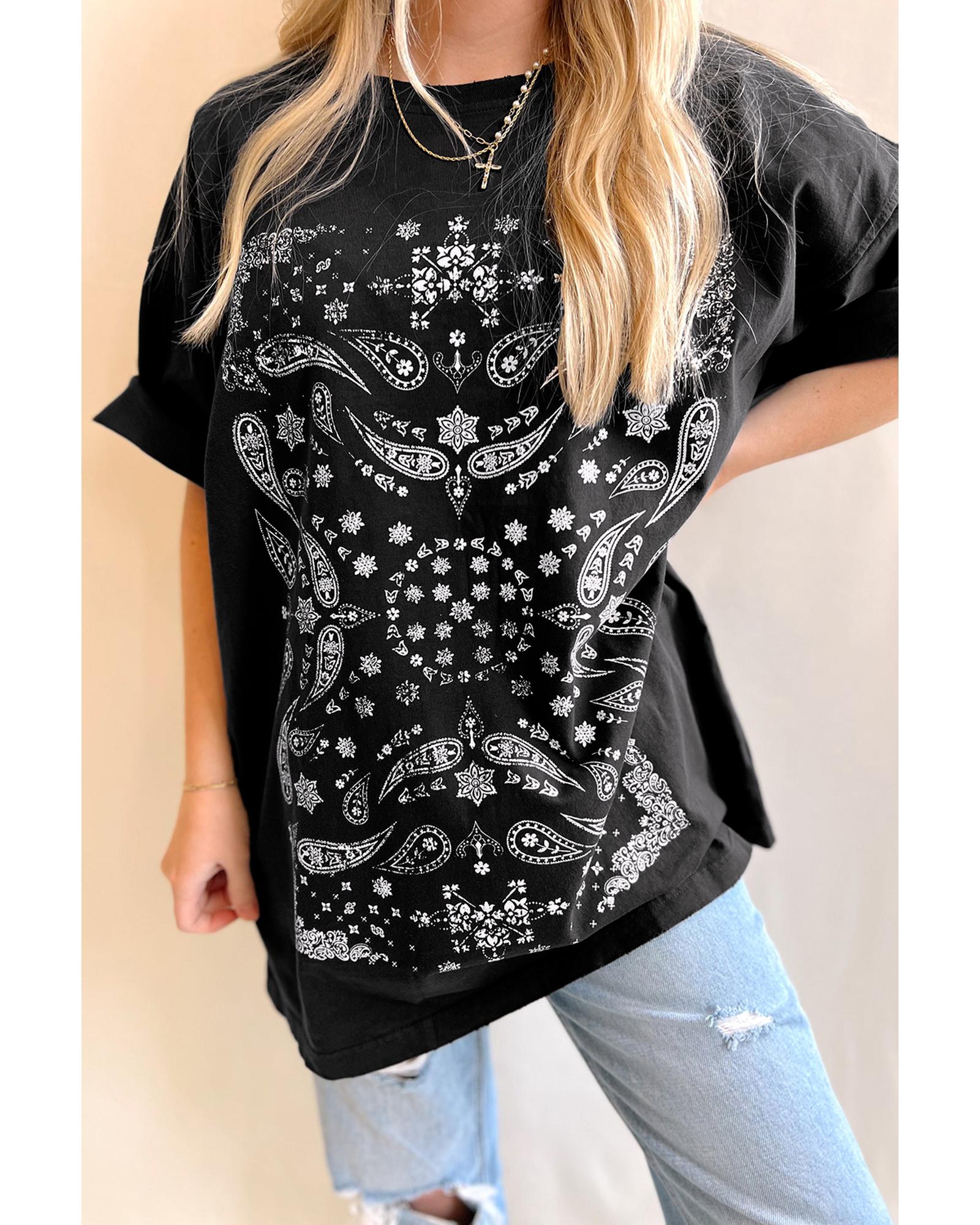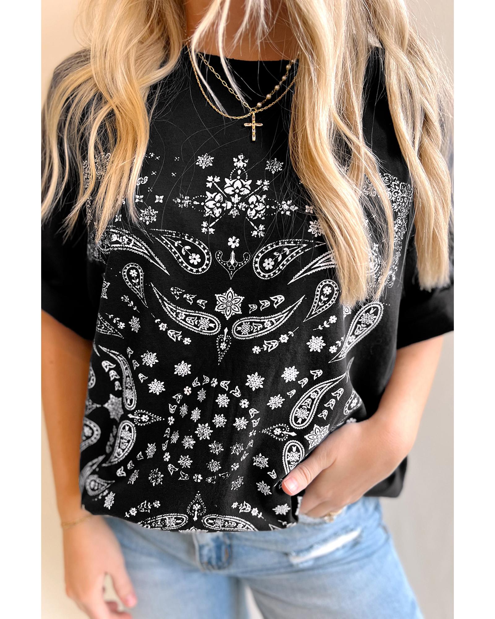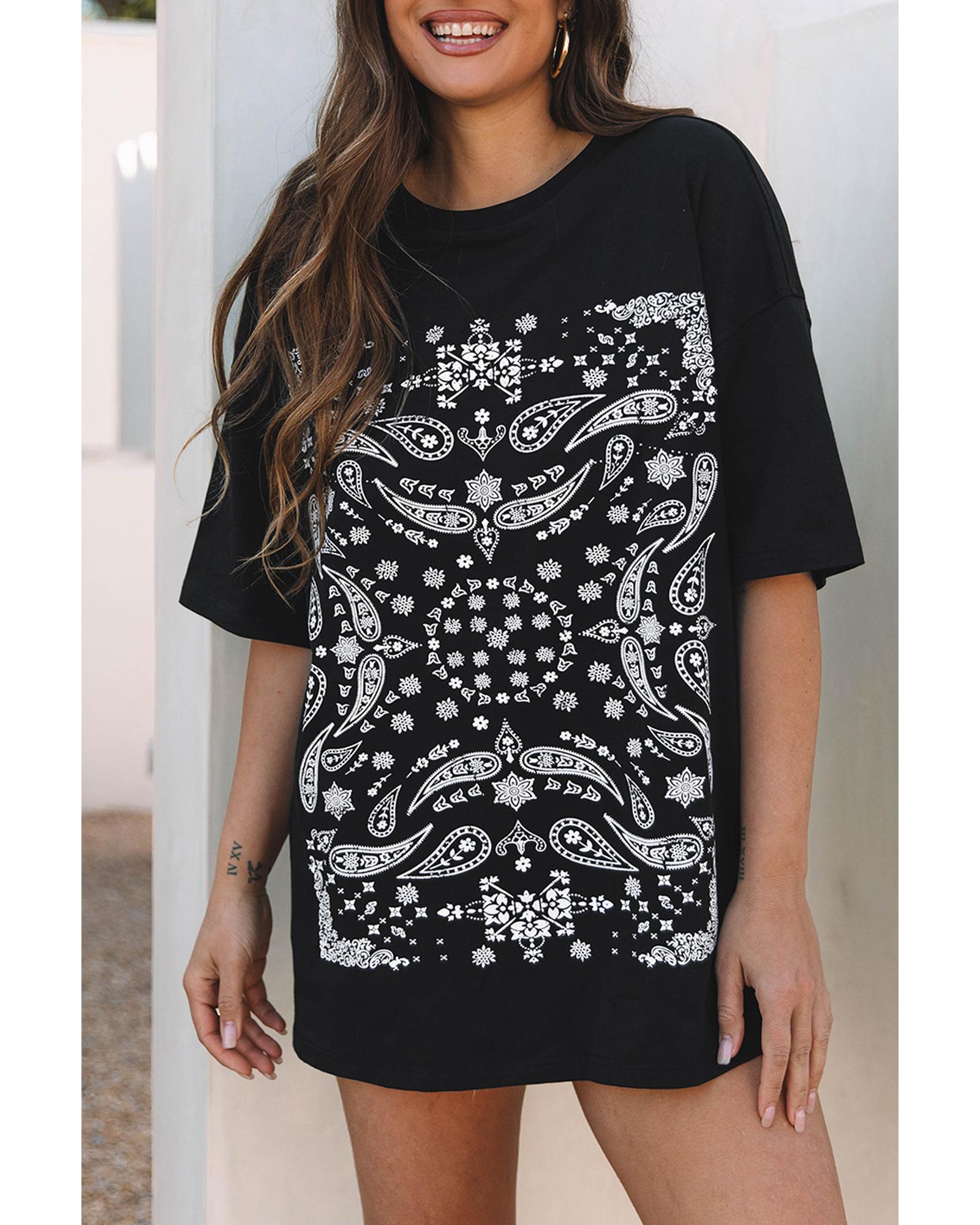 • Black Paisley Print Crew Neck Loose Fit Tunic Tee