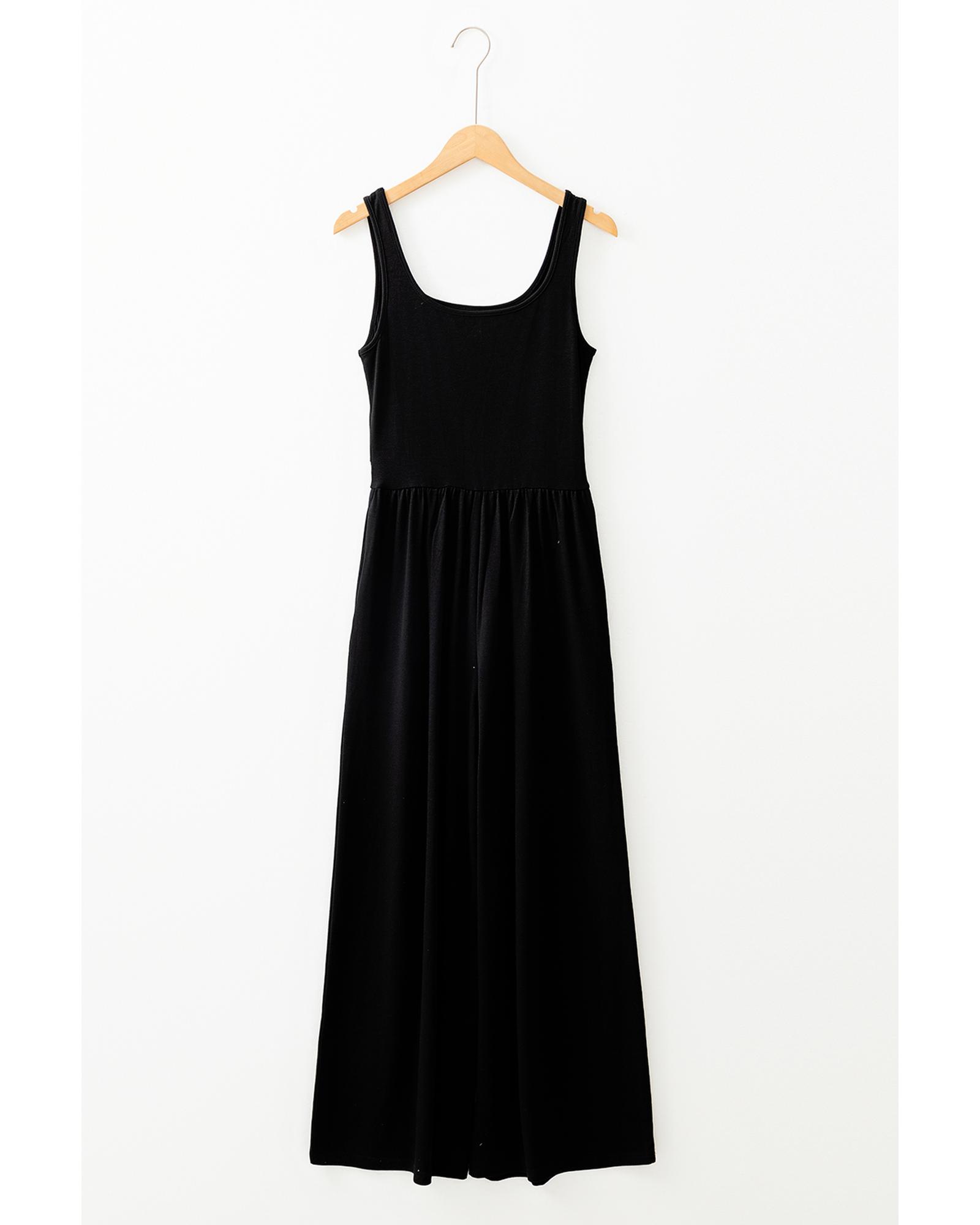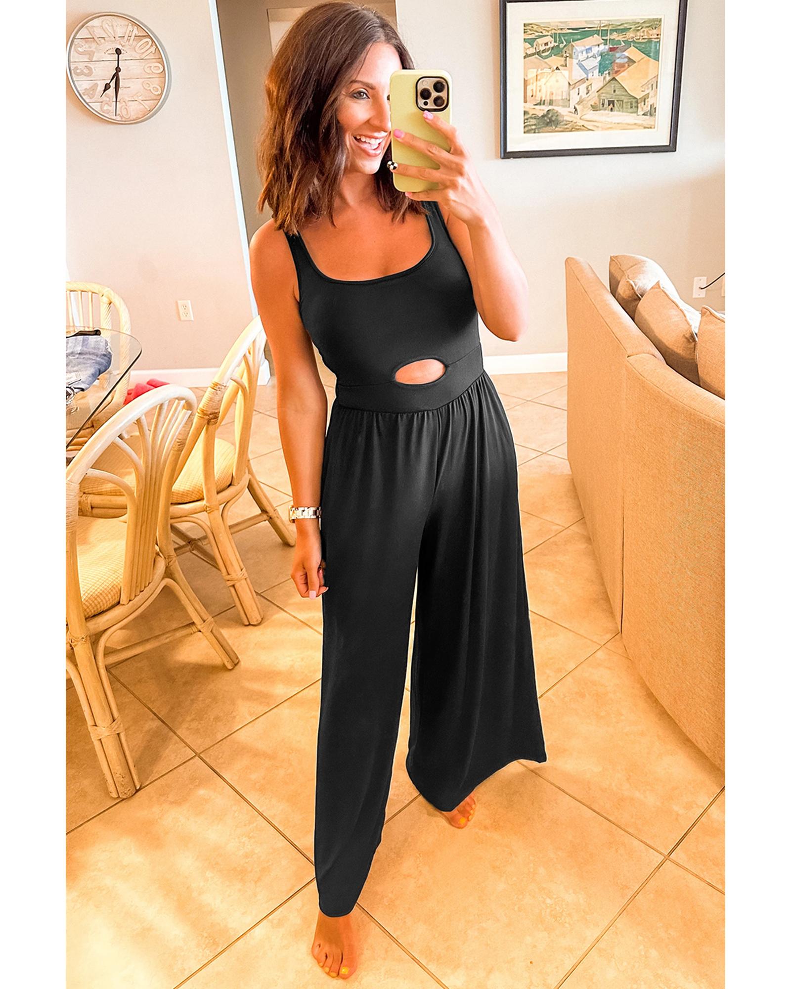 Black Peekaboo Wide Leg Square Neck Sleeveless Jumpsuit – L