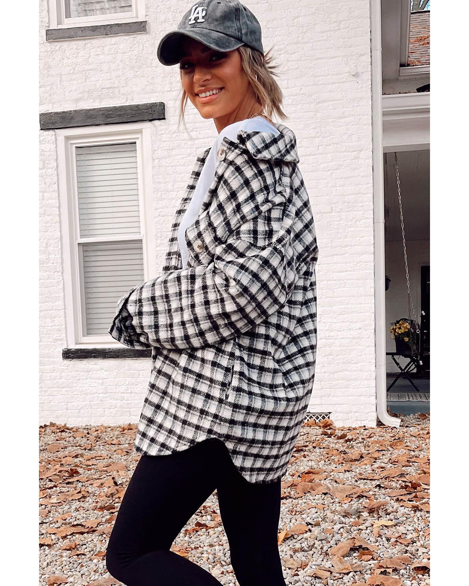 - Stylish black plaid print tunic shacket