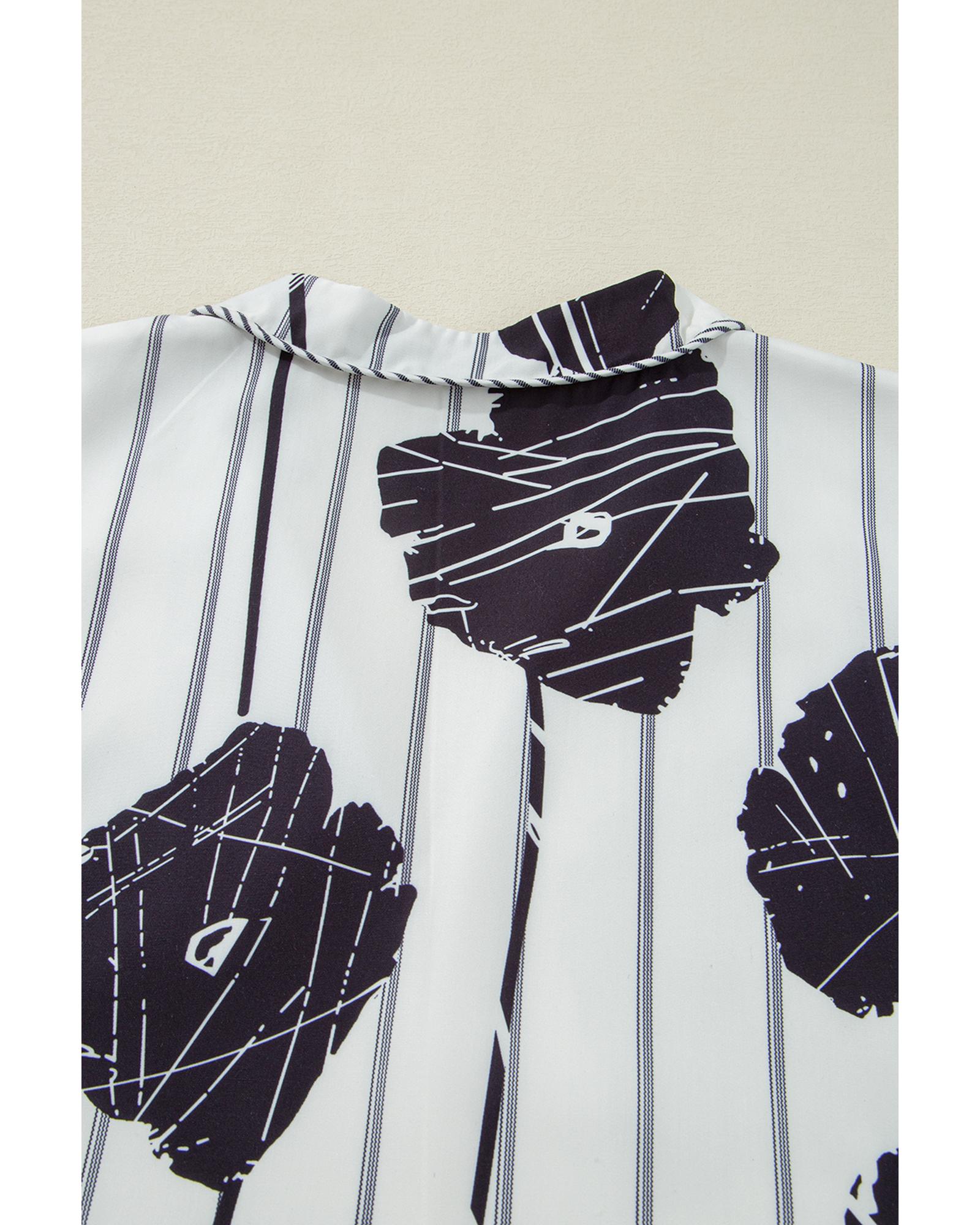 Black Plus Size Floral 3/4 Puff Sleeve Lace-up Neck Mini Dress – 1X