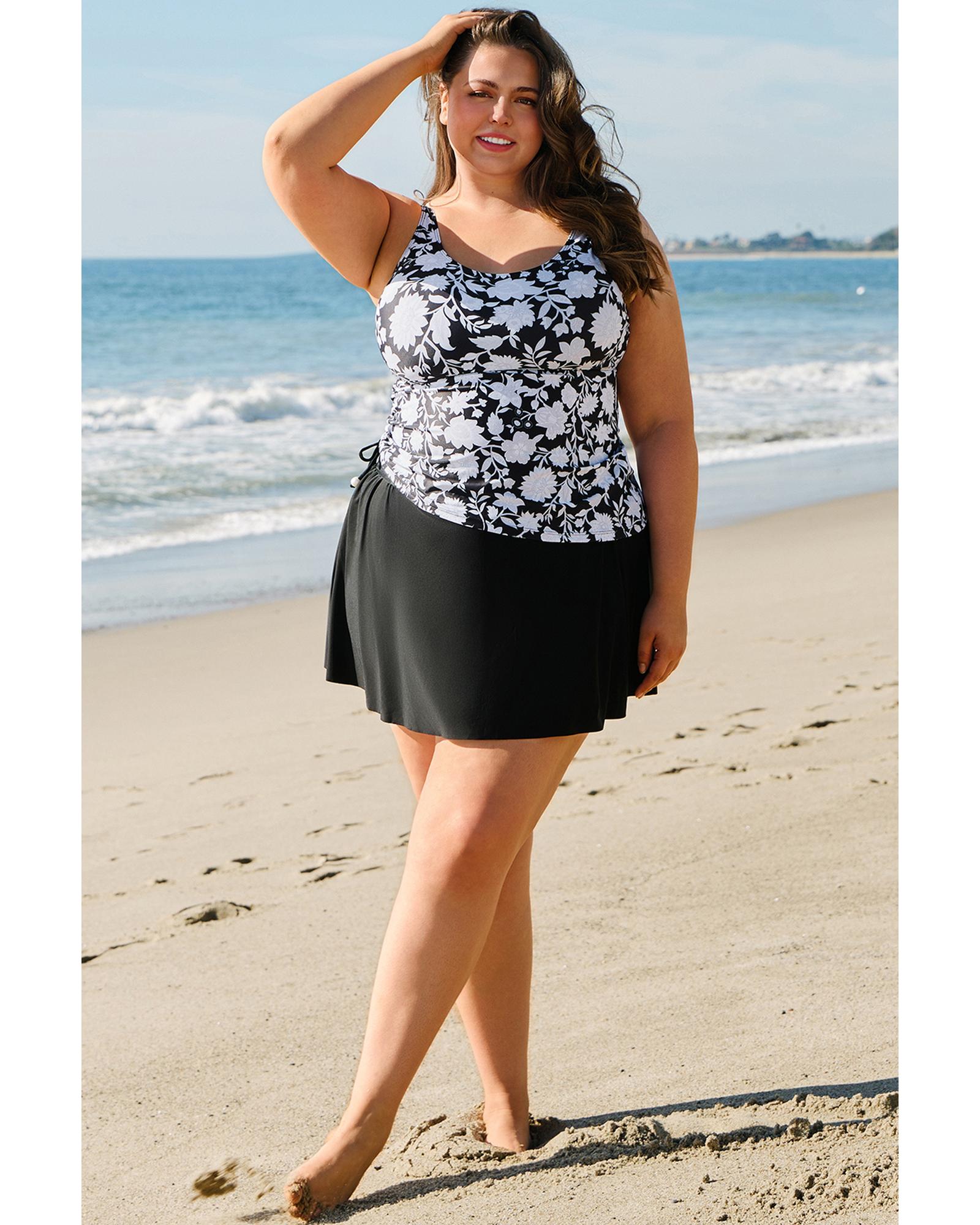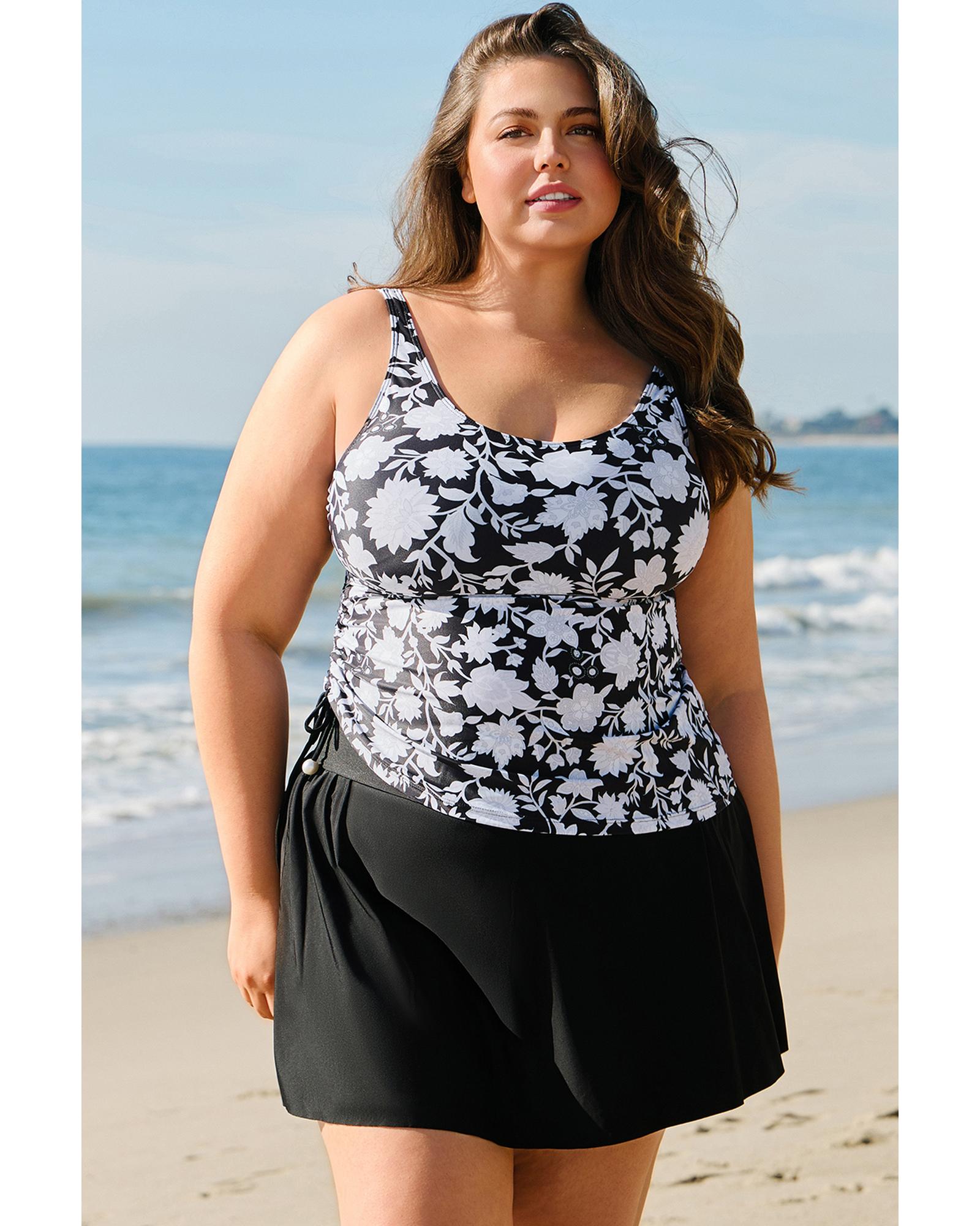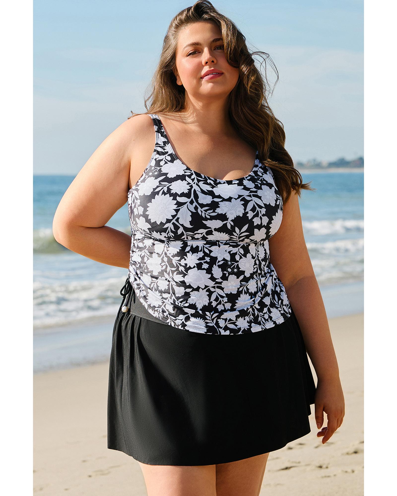 • Black plus size printed tankini set