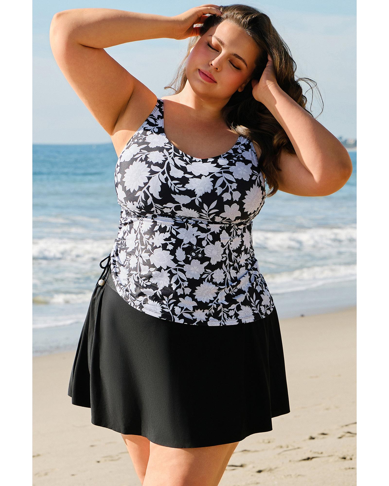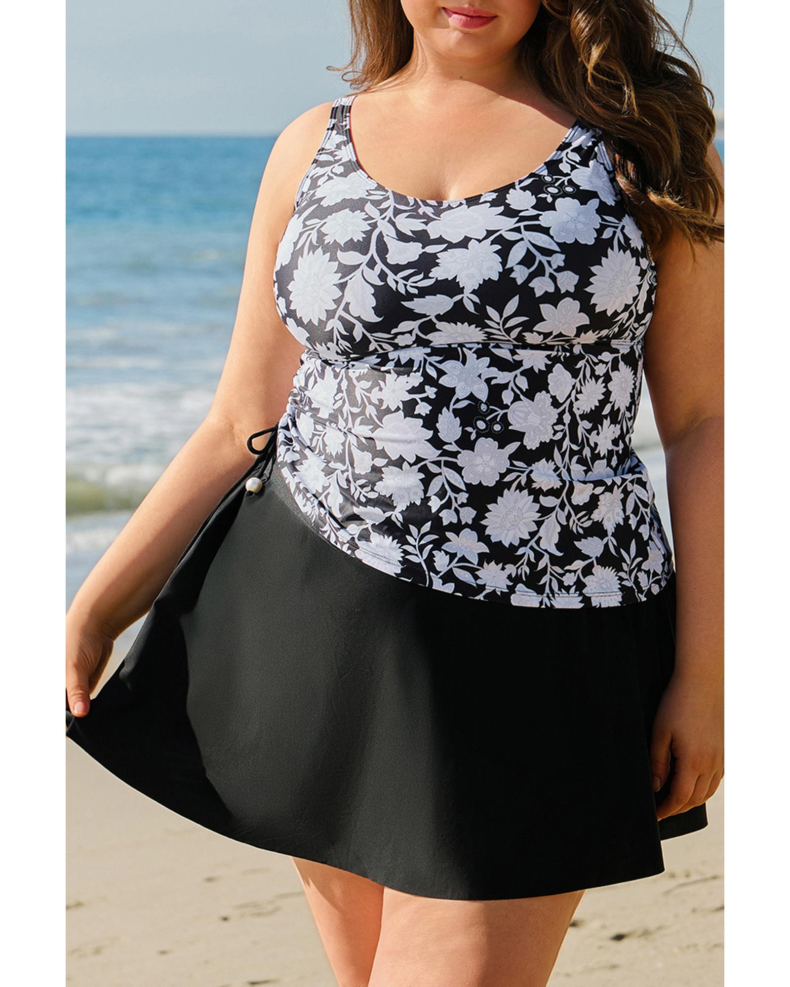 • Black plus size printed tankini set