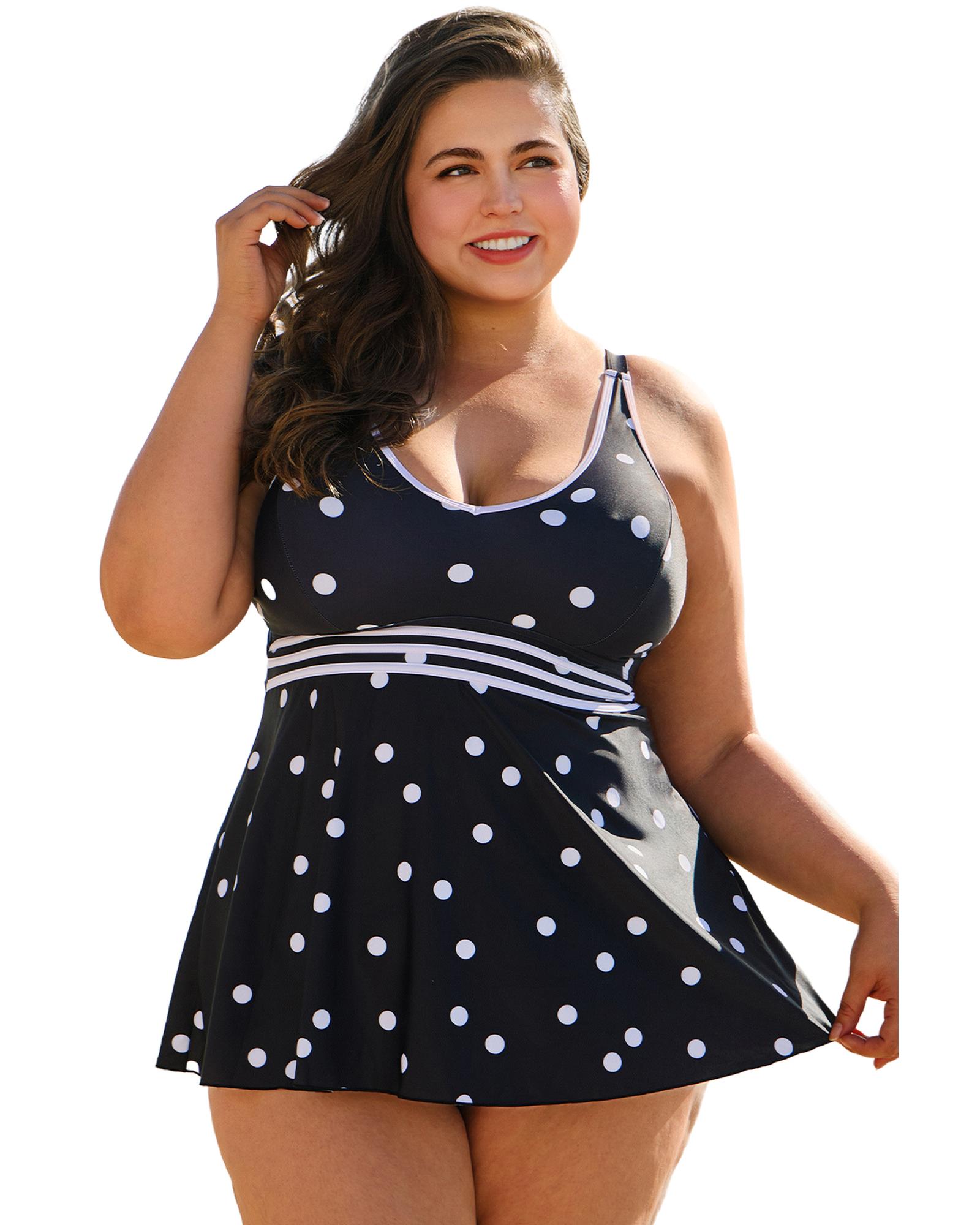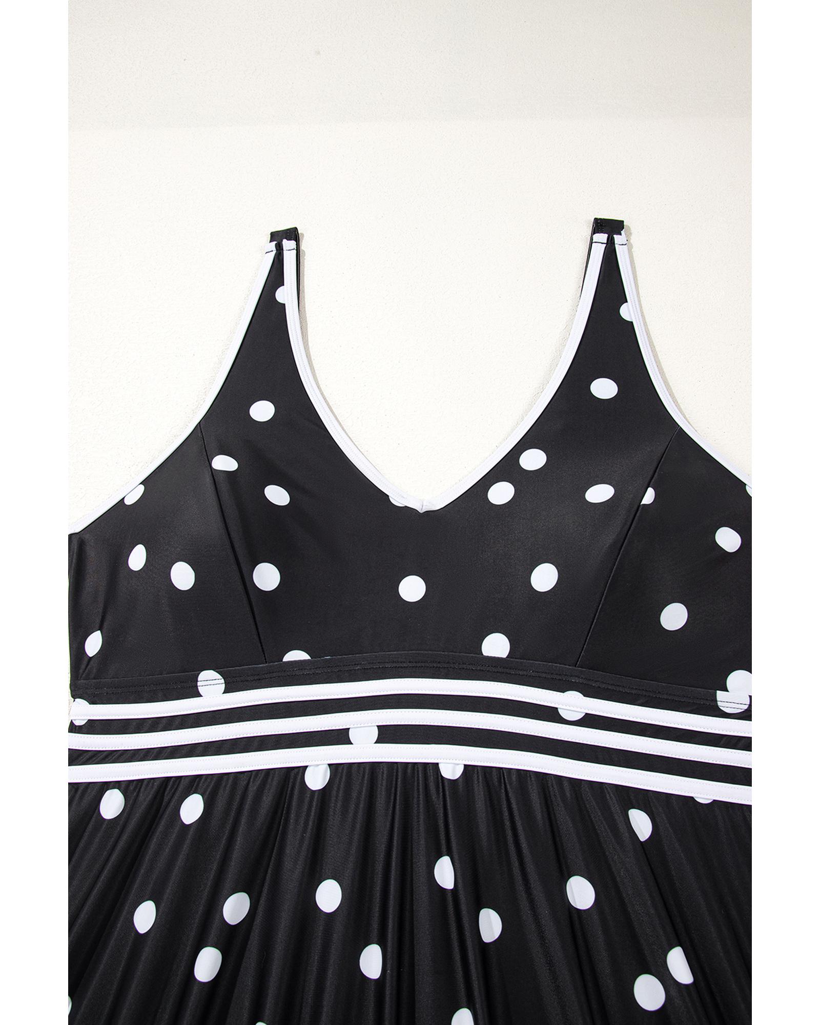 Black Polka Dot Trim V Neck Plus Size Swim Dress – 1X