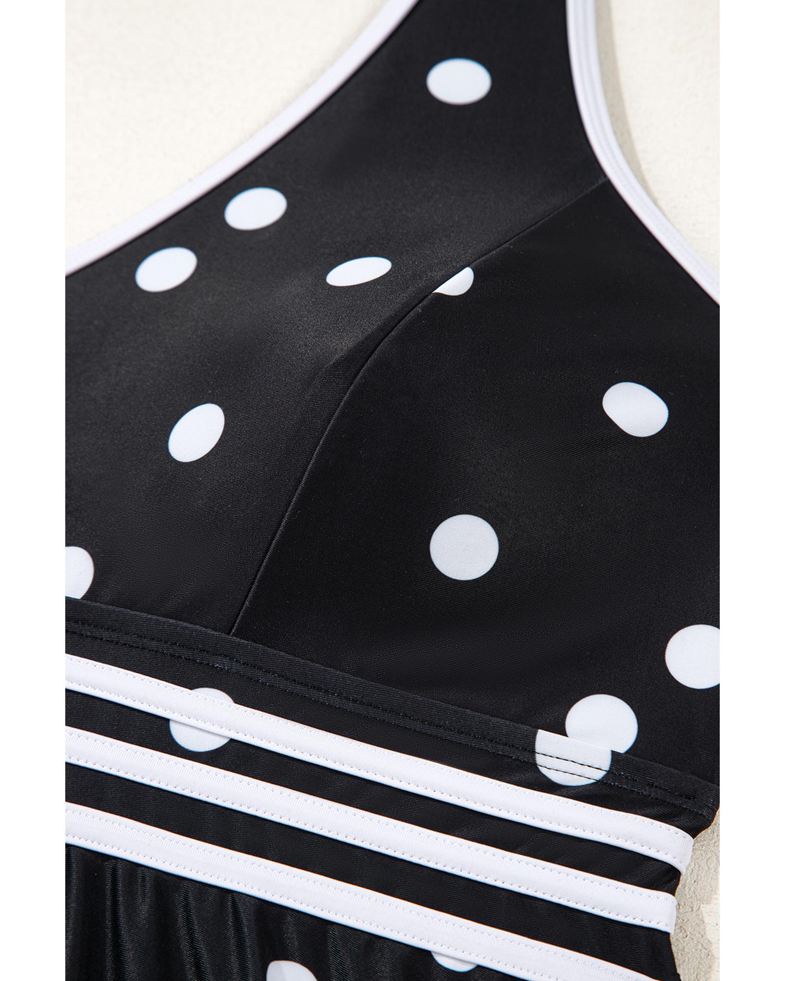 Black Polka Dot Trim V Neck Plus Size Swim Dress – 3X