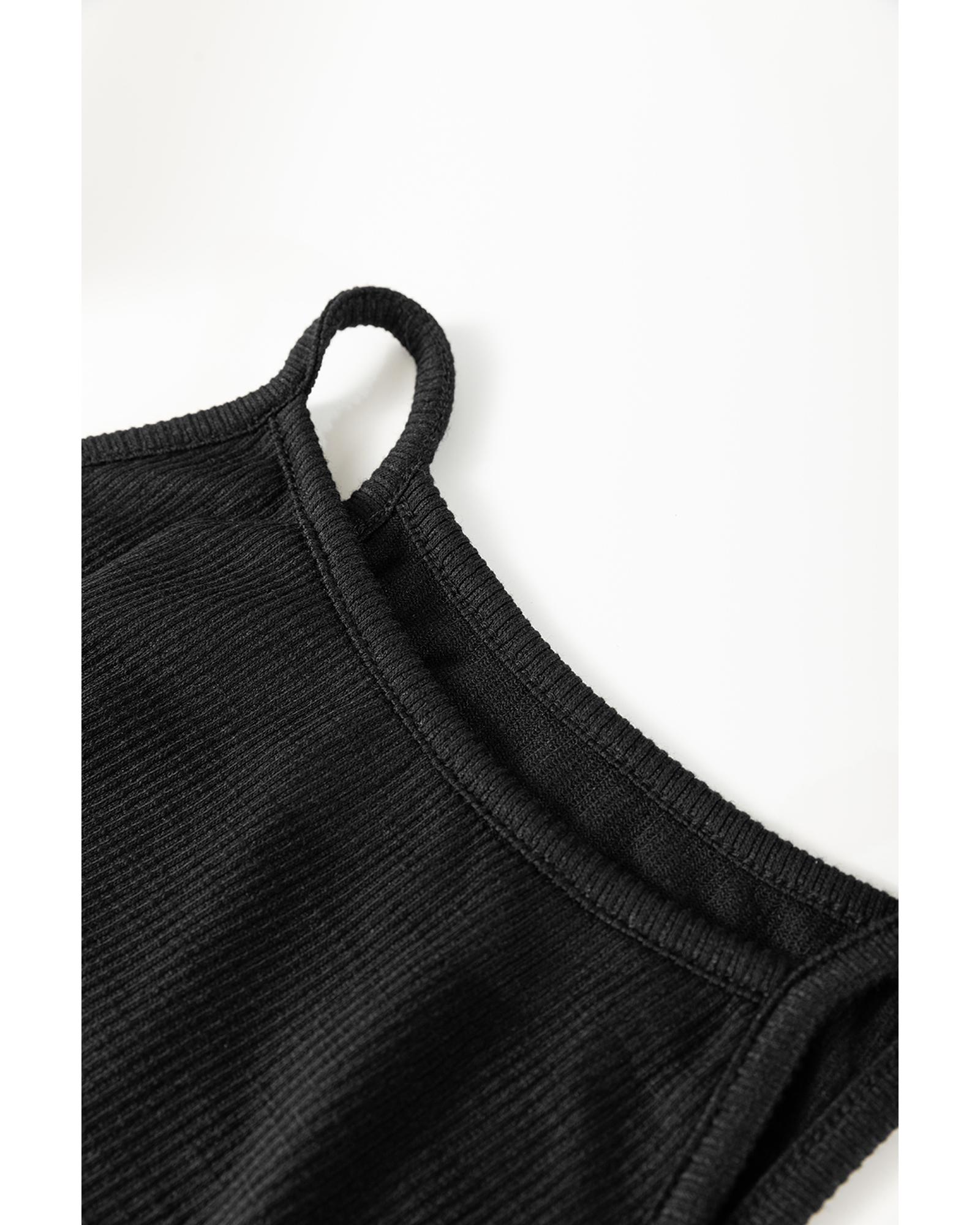 - Black Racerback Ribbed Knit Drawstring Bodycon Dress