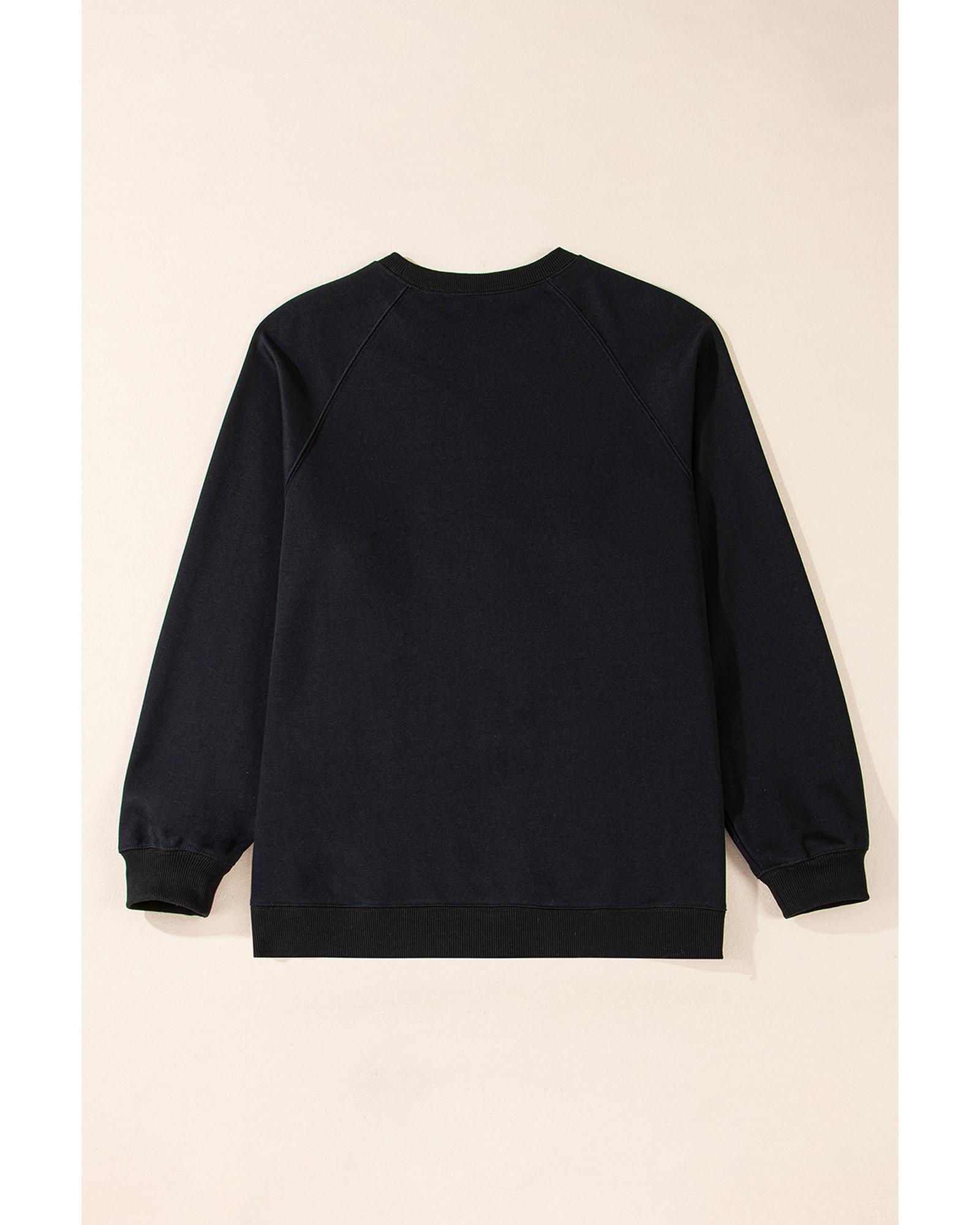 Black Rainbow Raglan Sleeve Crew Neck Plus Size Sweatshirt – 1X